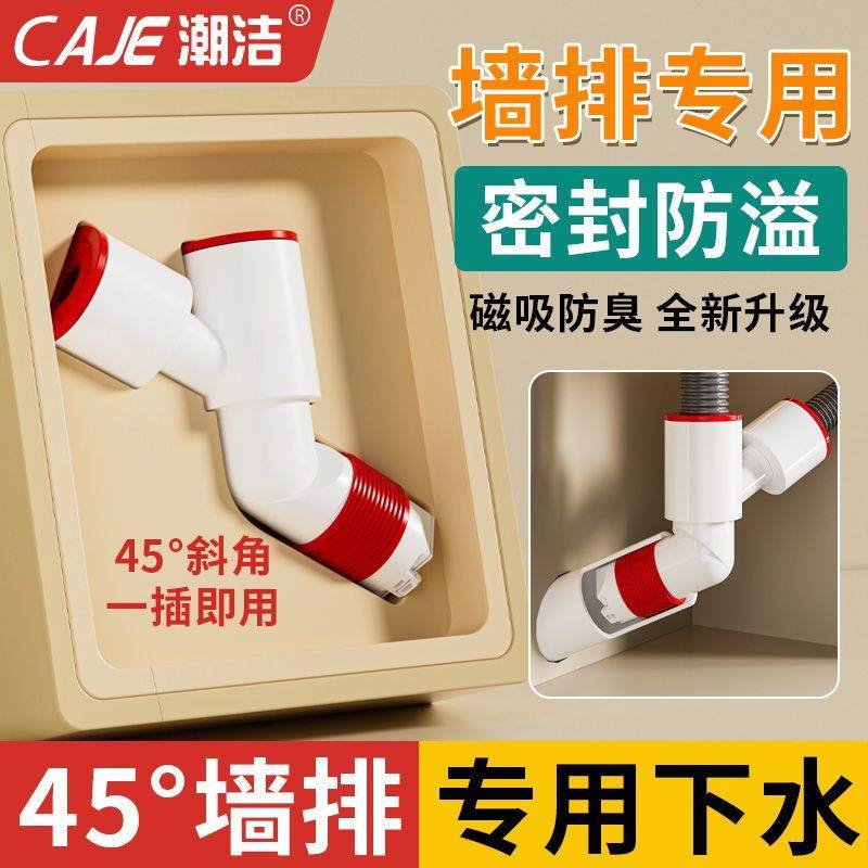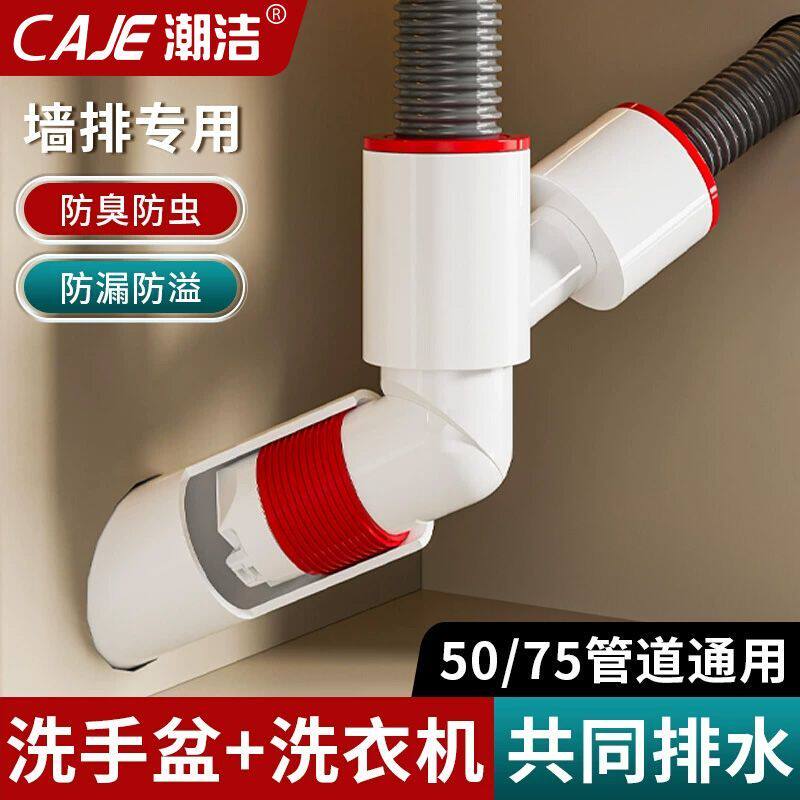 潮洁墙排下水三通厨房洗菜盆排水管道三头通专用接头防臭防溢水