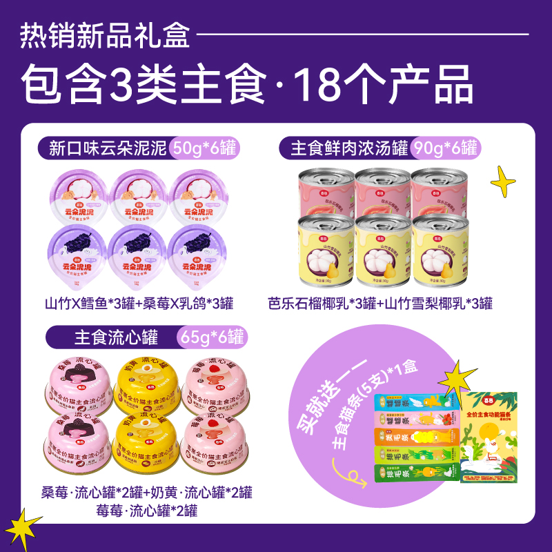 【人气湿粮套组】喜崽湿粮全价主食餐盒云朵泥流心罐汤罐套装