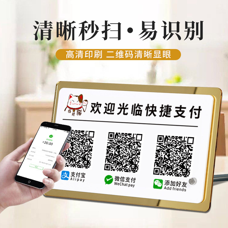 高档收款码提示牌二维码展示牌亚克力高级感收钱牌定制支付宝微信收银牌收付款贴纸标志牌创意商家店铺加好友