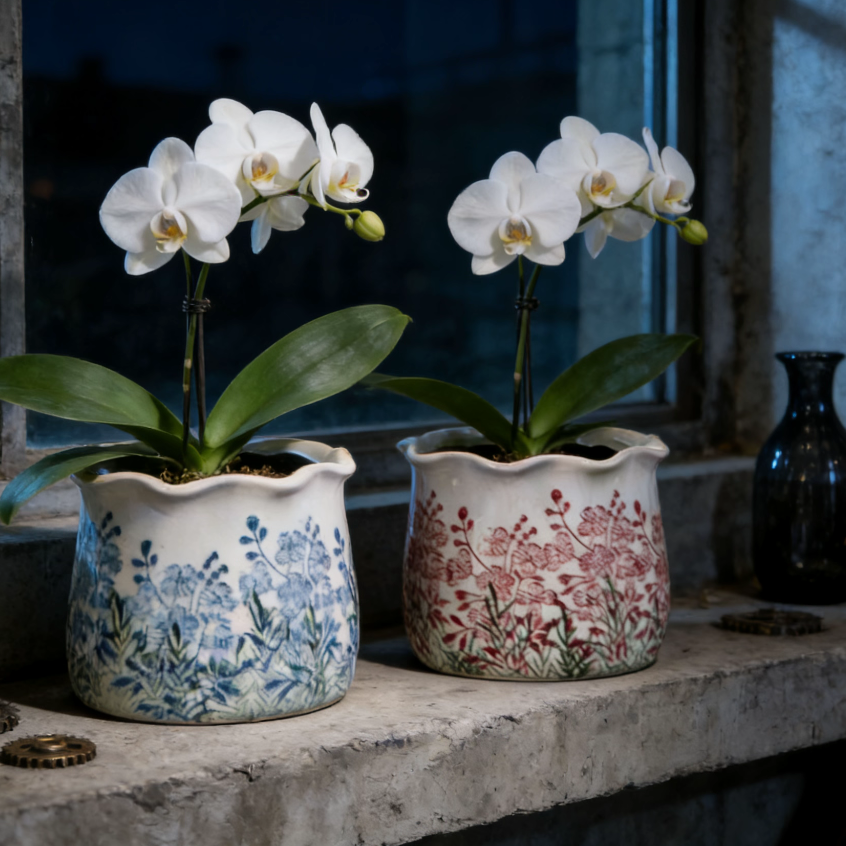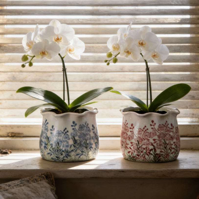 复古花盆田园风陶瓷蝴蝶兰花器客厅插花干花小众高级感创意装饰品