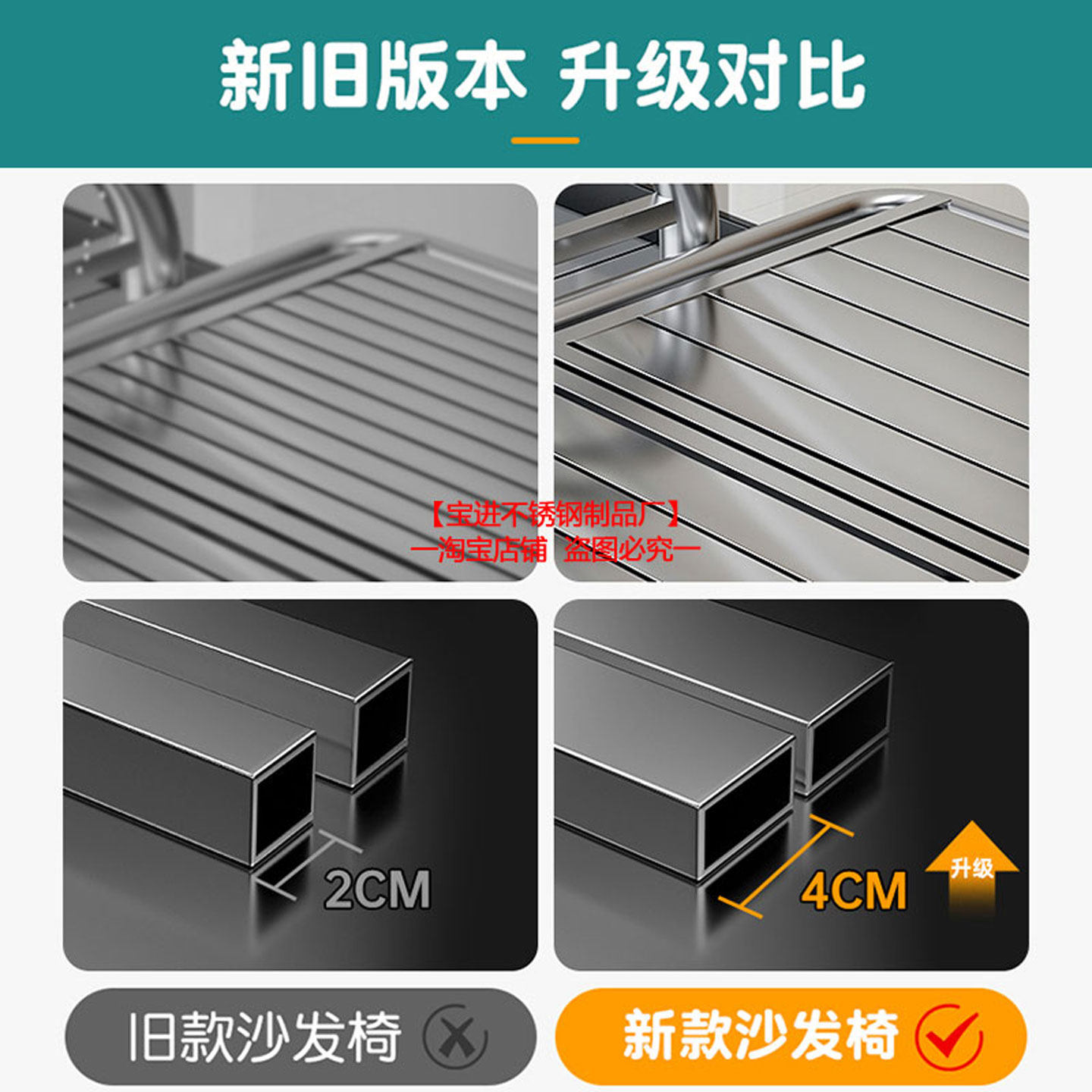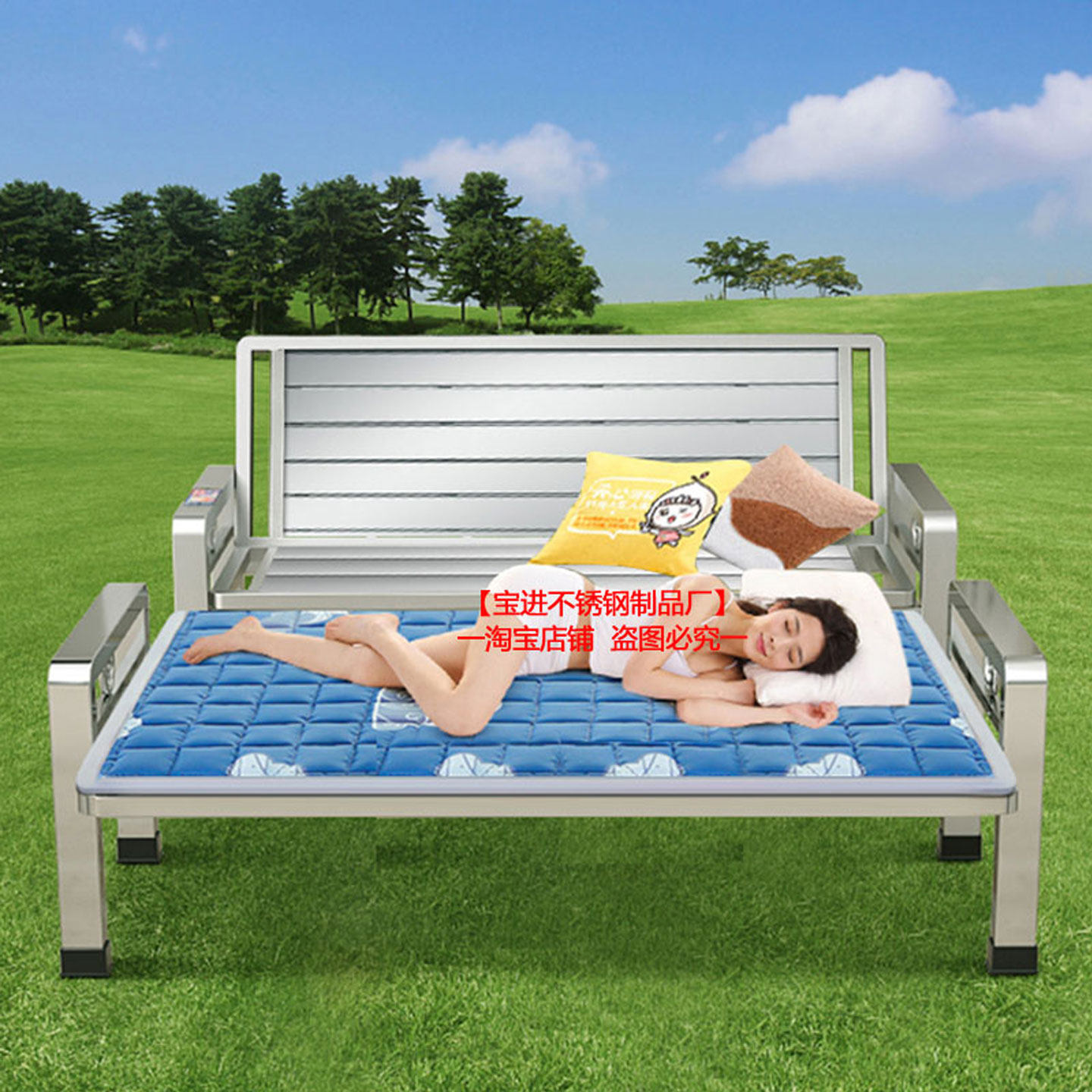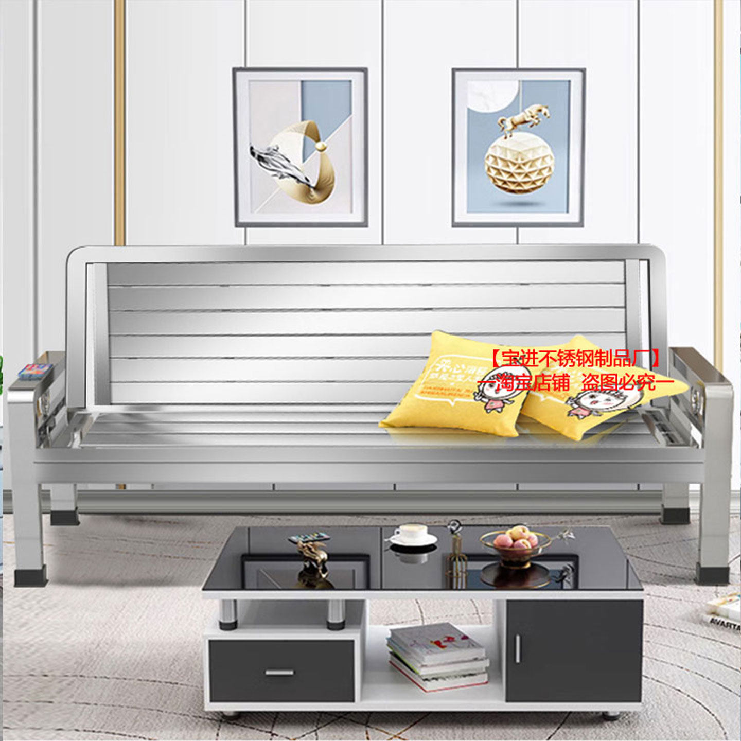304不锈钢防锈坚固加厚两用沙发办公室家用客厅简易折叠长条椅