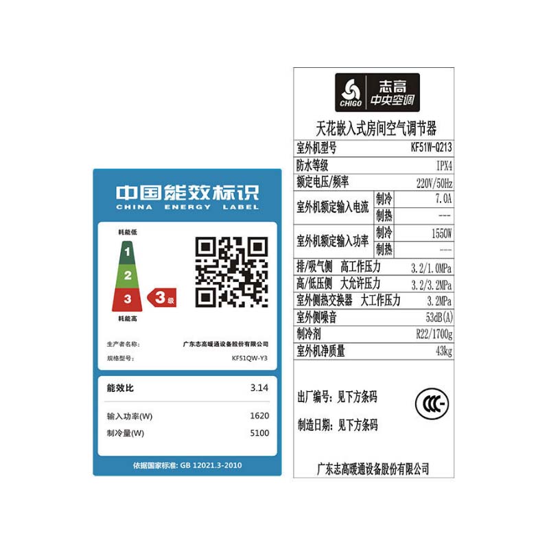 志高 2匹天花机家用中央空调 吸顶嵌入式天井机220V单冷KF51QW-Y3