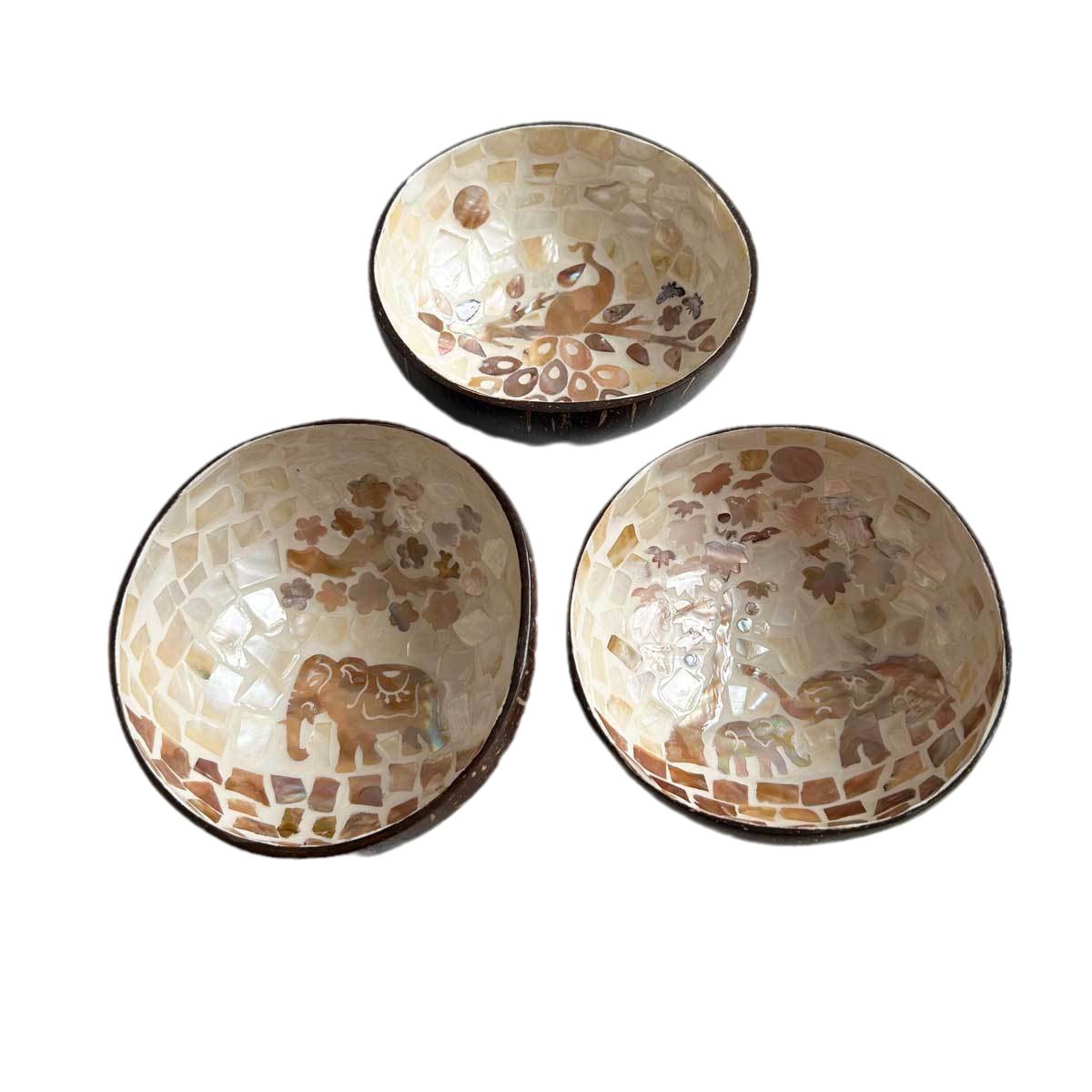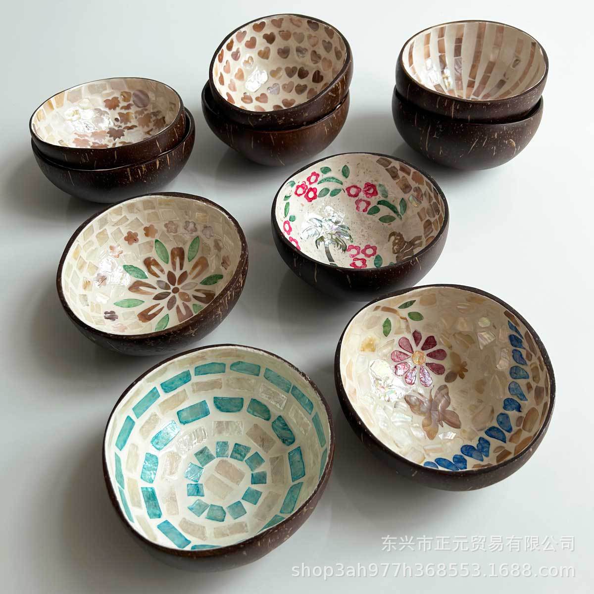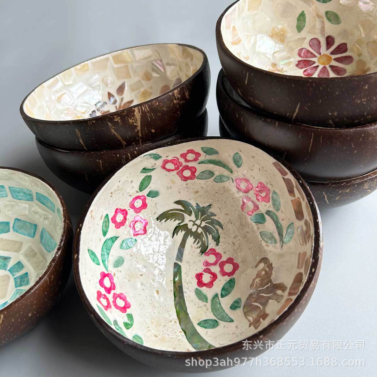 天然手工贝壳椰子碗玄关钥匙收纳盘创意家居椰壳碗装饰品收纳摆件