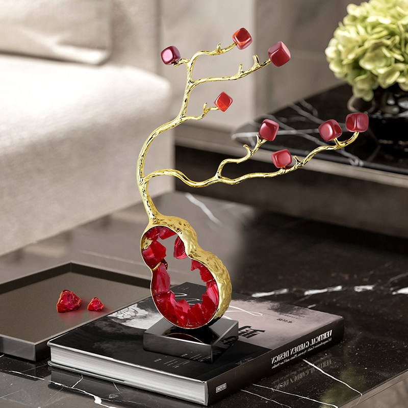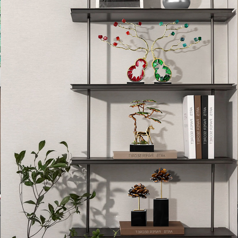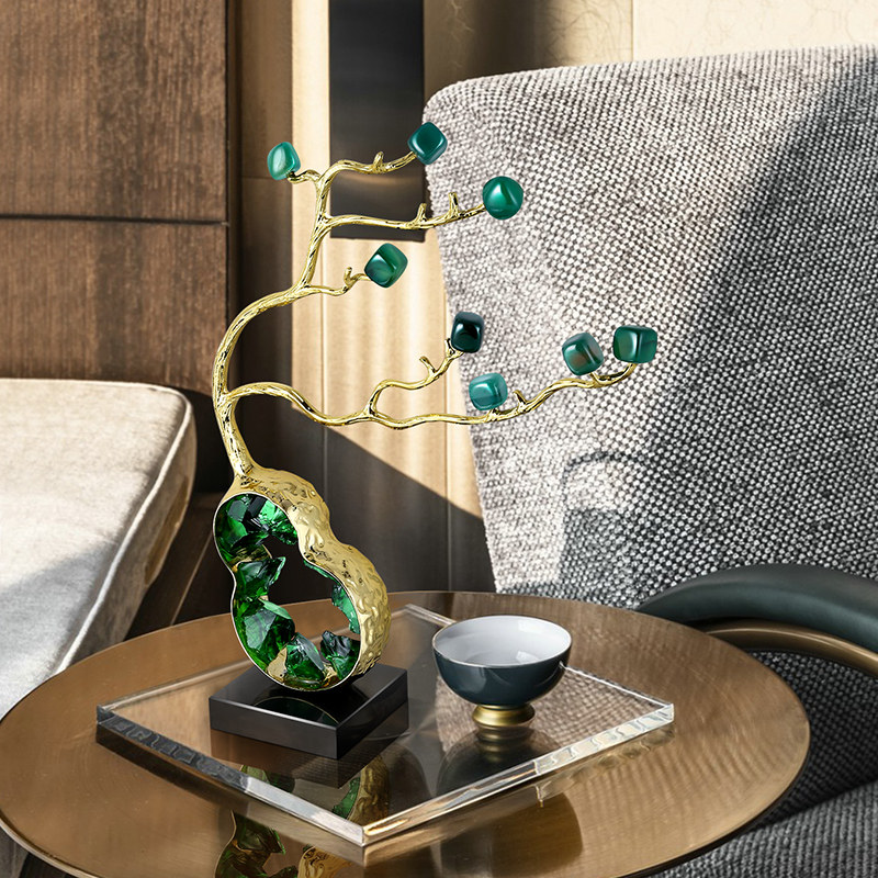 纳福葫芦国学摆件客厅办公室酒柜玄关装饰品玛瑙晶石工艺品高级感