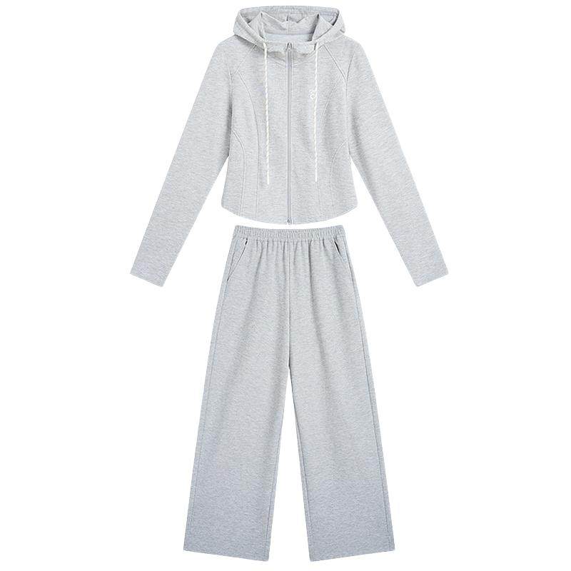 紫涵韩系运动休闲针织卫衣裤套装女春秋新款连帽外套阔腿裤两件套