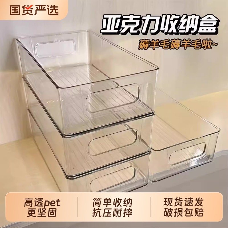 升级透明收纳盒零食整理盒亚克力盒子桌面厨房橱柜杂物抽屉收纳筐