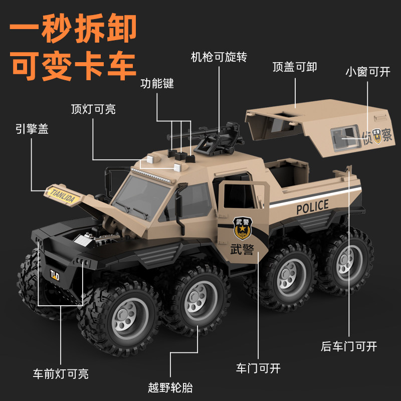 超大号特警察车儿童越野八轮小汽车公安仿真装甲车男孩玩具车新款