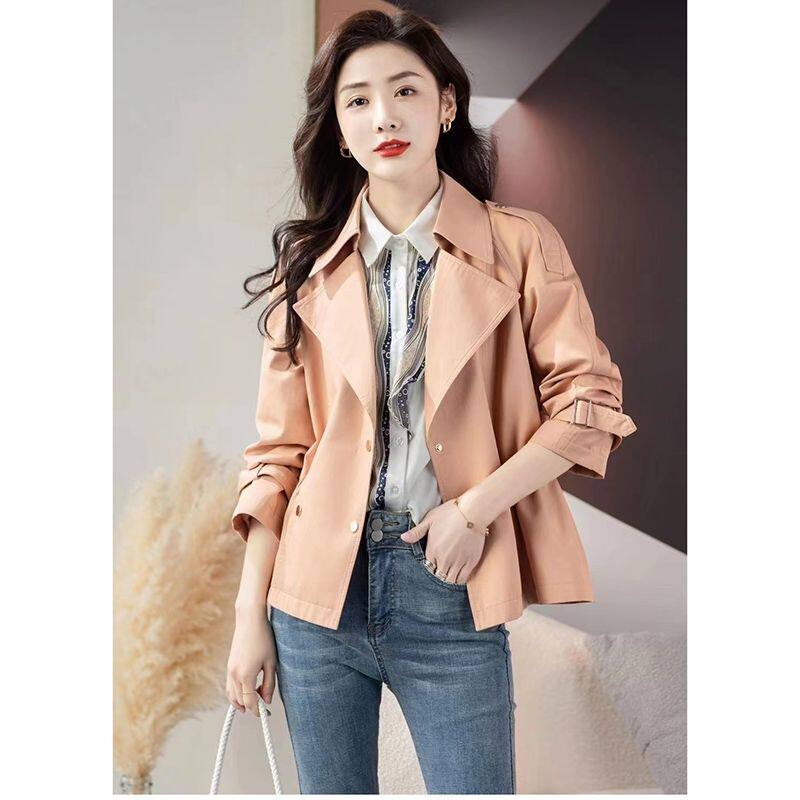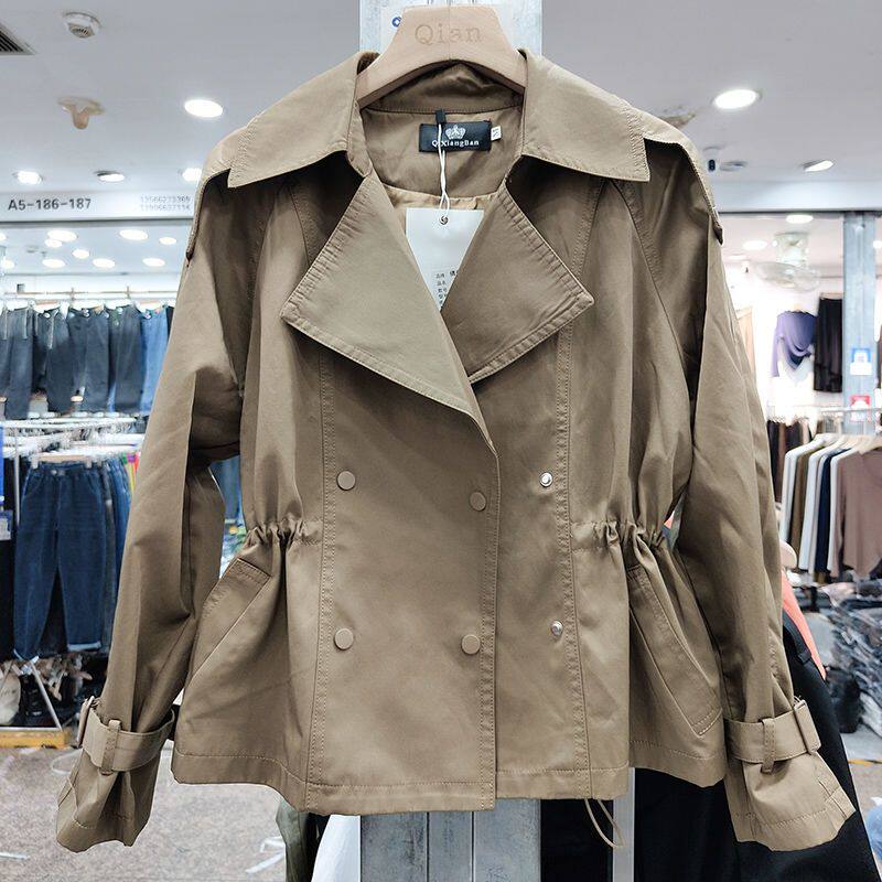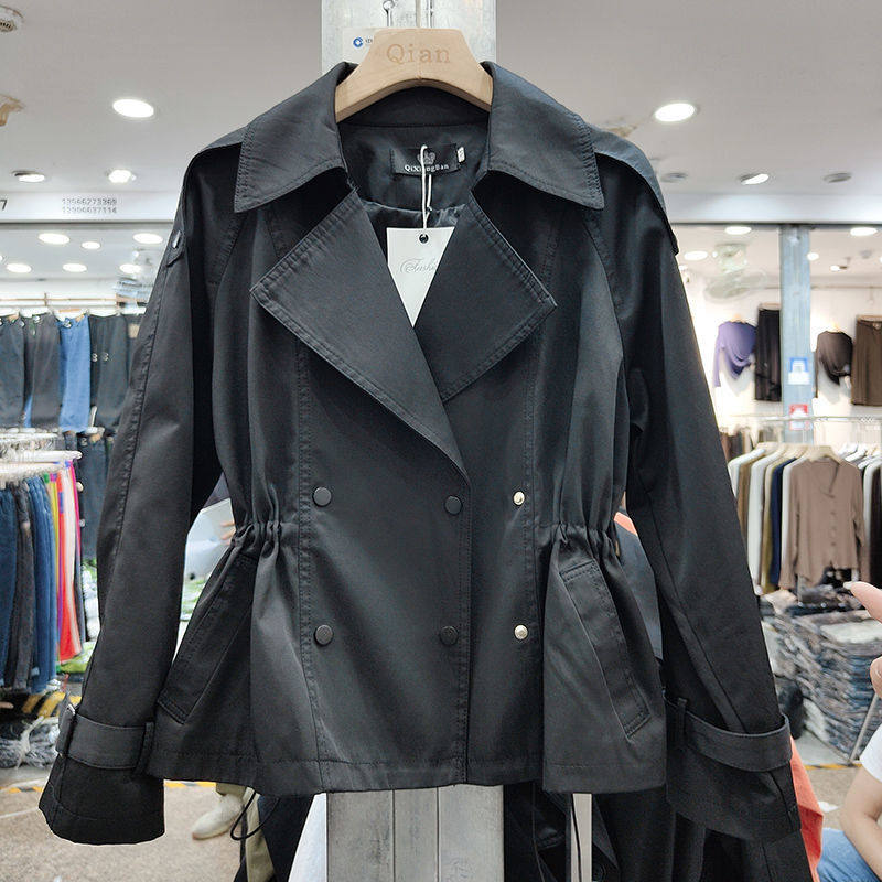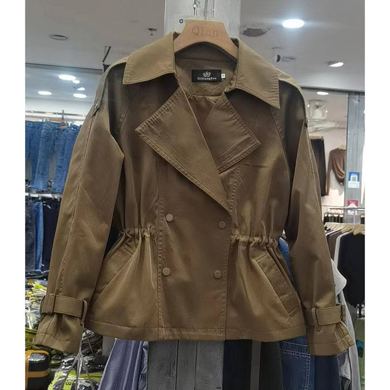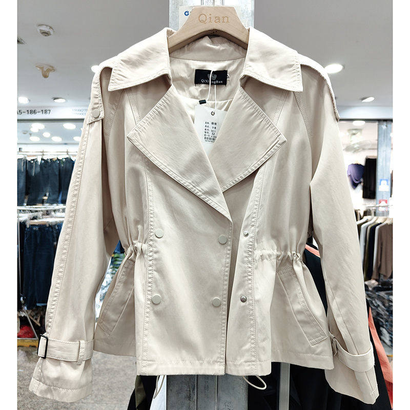 短款风衣外套女双排扣2026年春装新西装领抽绳韩版小个子女士上衣