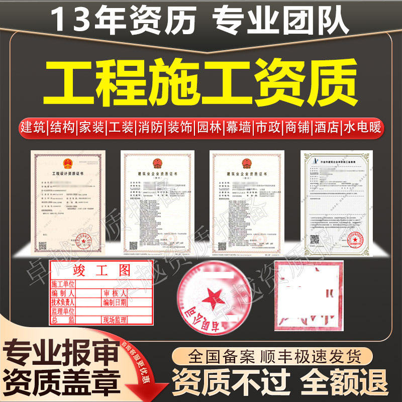 装修资质挂靠消防设计资质监理勘察建筑施工资质物业报审蓝图盖章