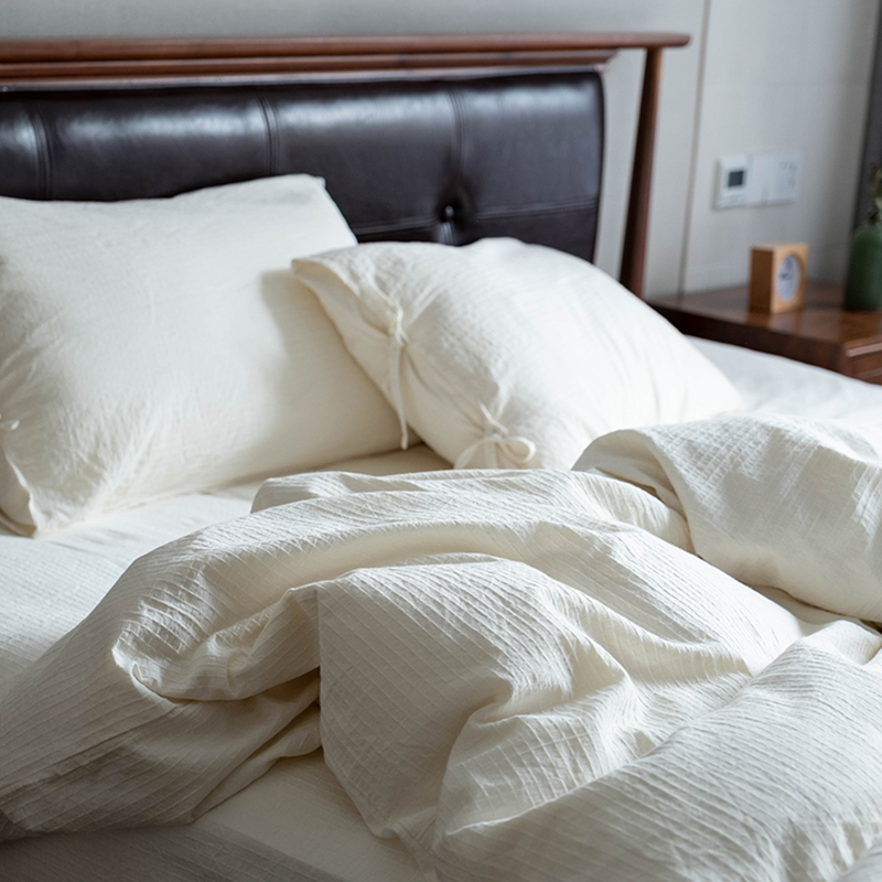 出口日本!A类天然原色100全纯棉床上用品白色四件套不染素色裸睡