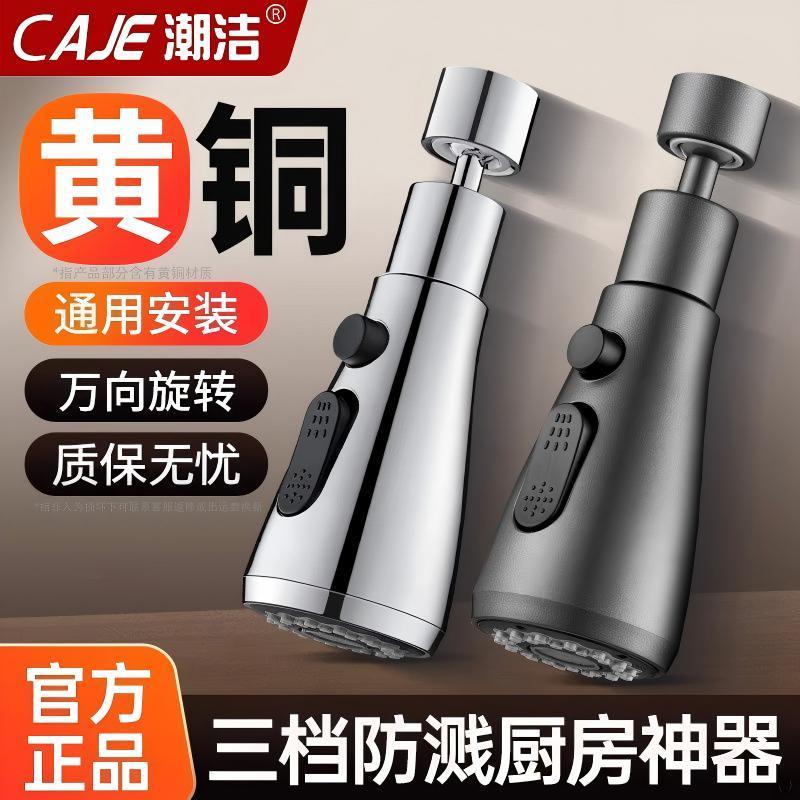 潮洁厨房水龙头三档旋转延伸器防溅神器洗菜盆万向接头通用增压