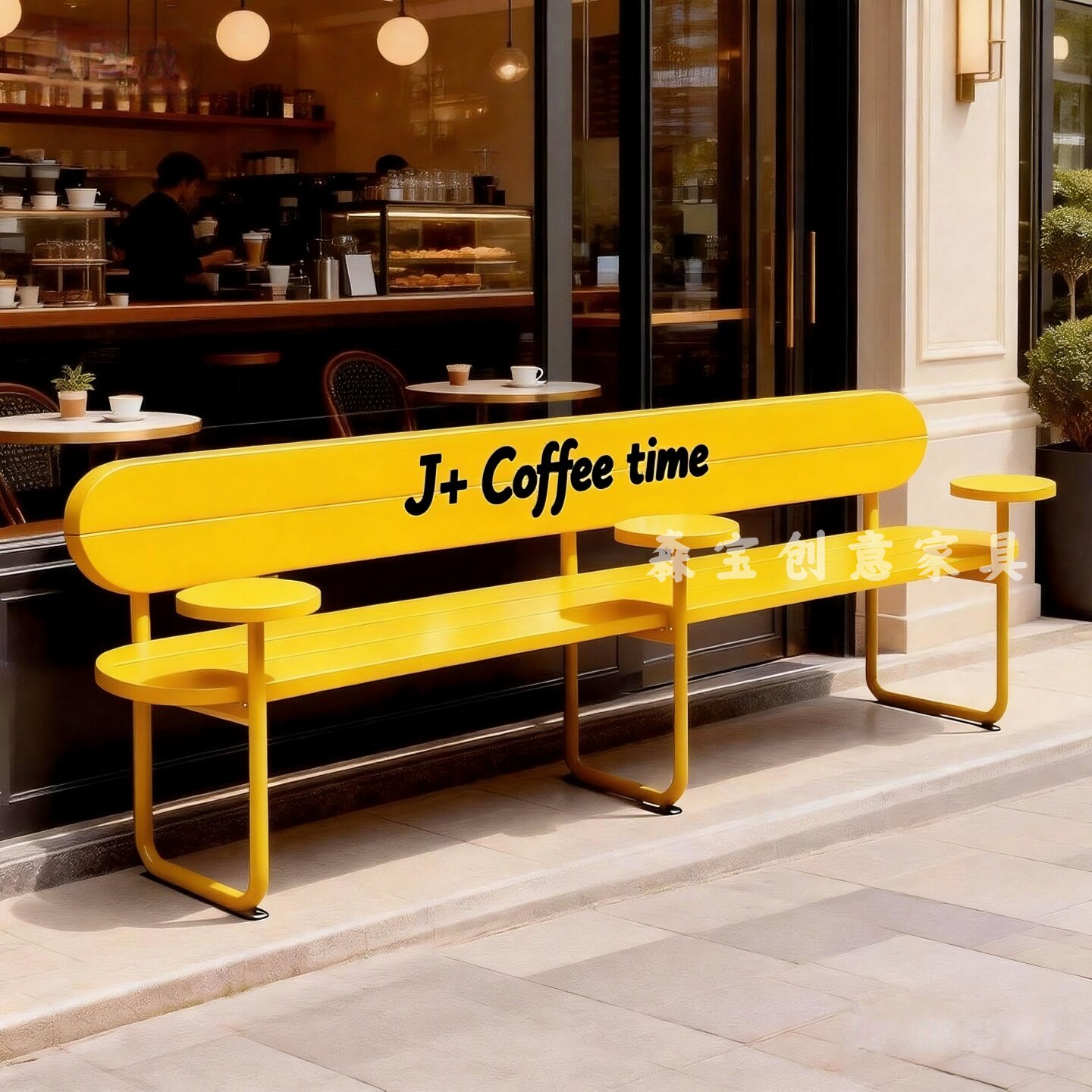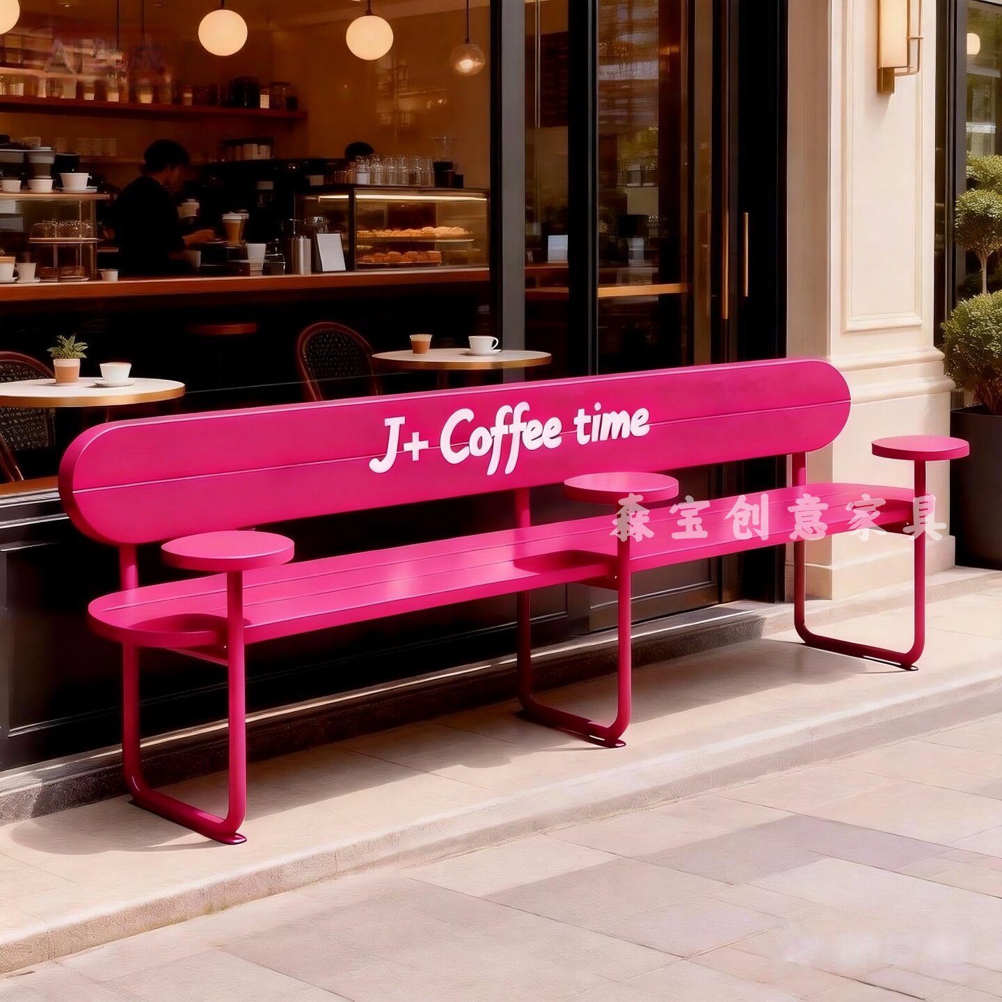 户外庭院公园广场靠背长椅商场门店网红长凳奶茶店咖啡厅长椅定制