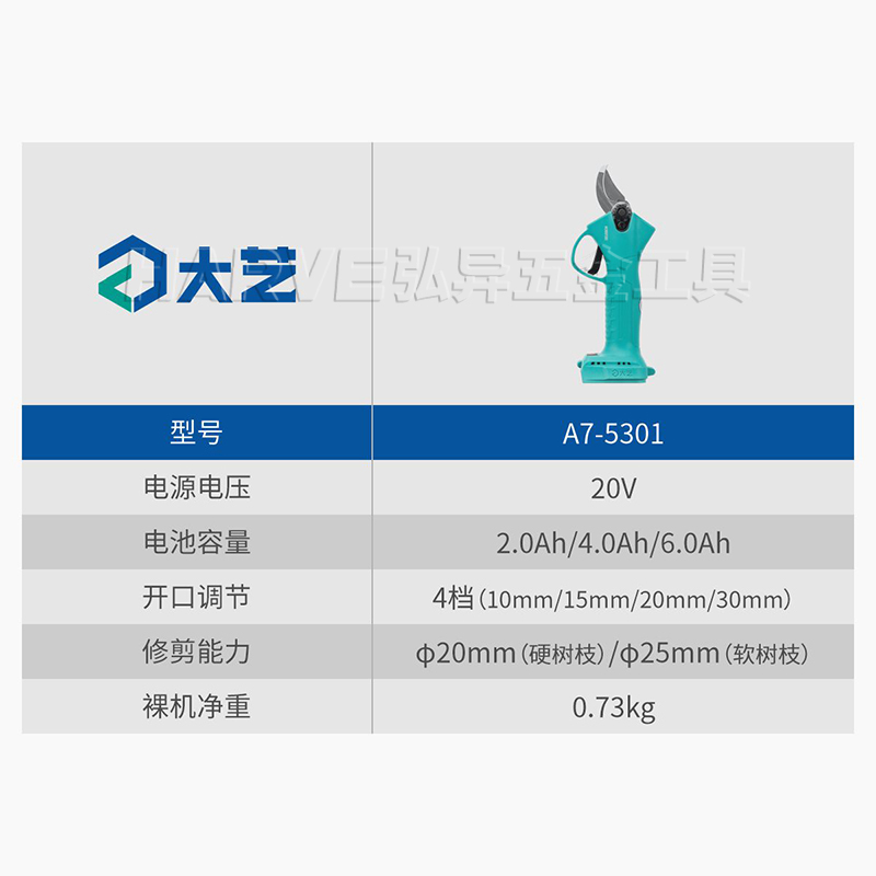 大艺正品A7-5301无刷锂电修枝剪充电式果树电动剪刀园林省力电剪