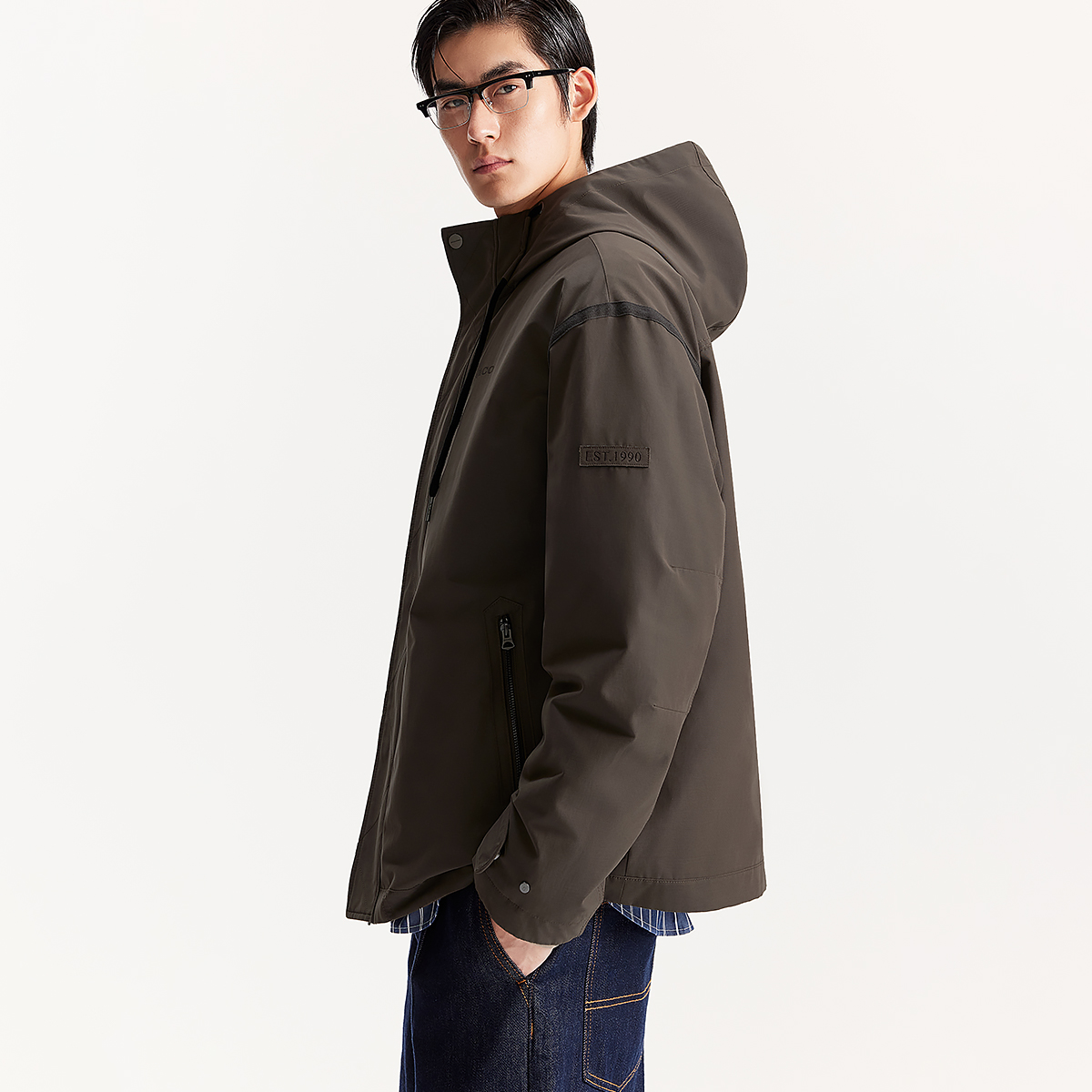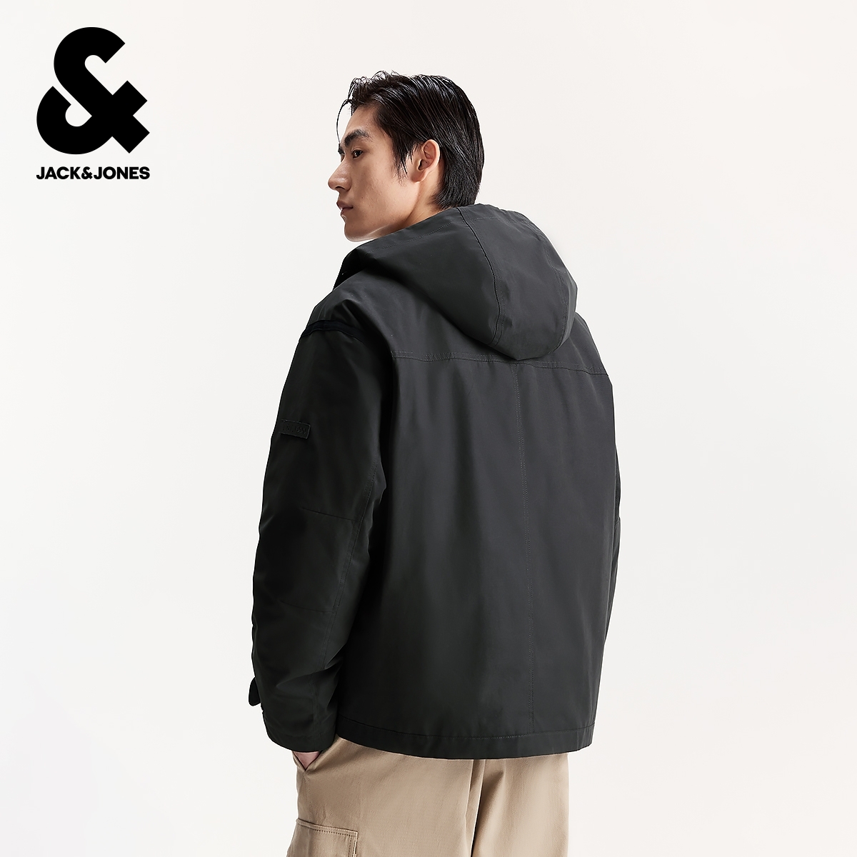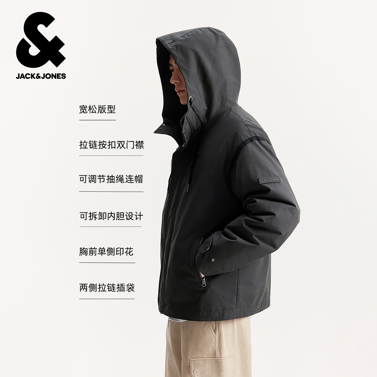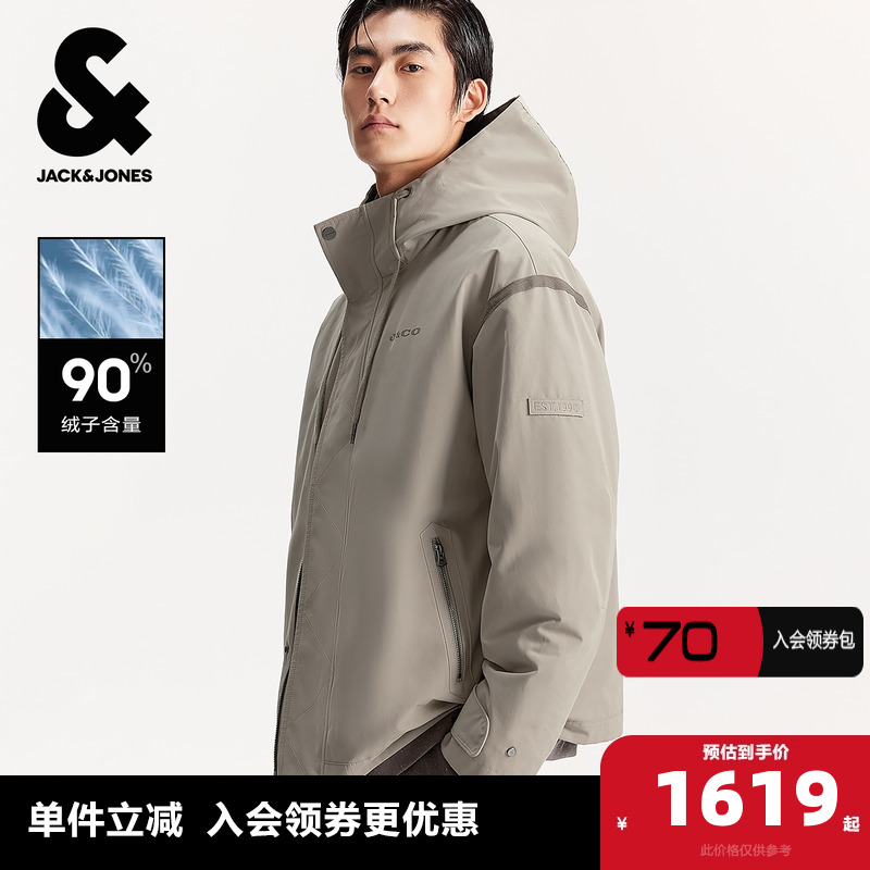 杰克琼斯男装冬季新款时尚印花常规款可拆卸内胆连帽羽绒服外套