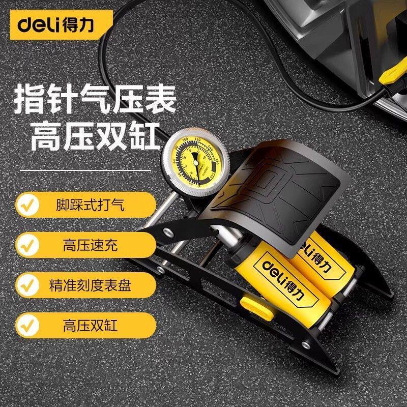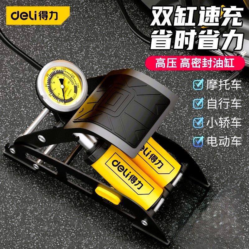 得力脚踩打气筒脚踏高压打气筒机械式汽车用自行车篮球充气设备