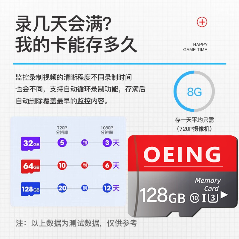 监控摄像头专用卡128G云台摄像头64g存储卡sd卡fat32TF256g专用卡