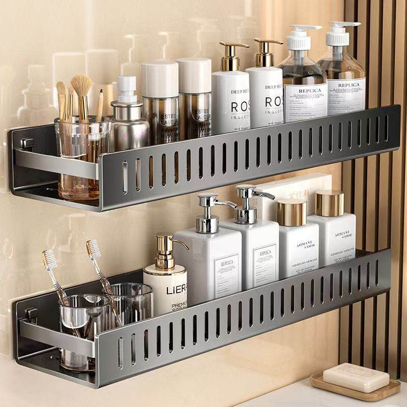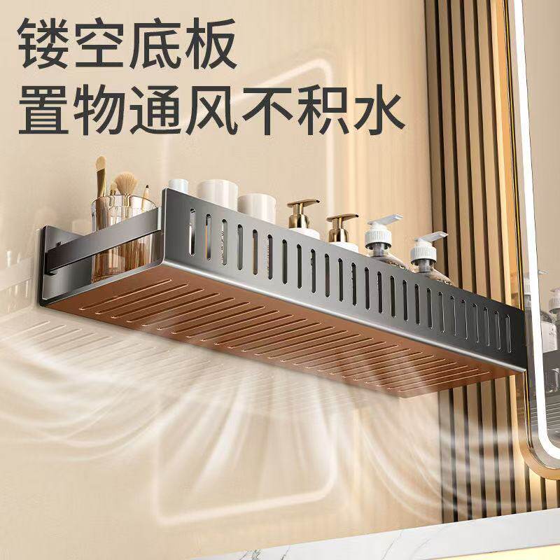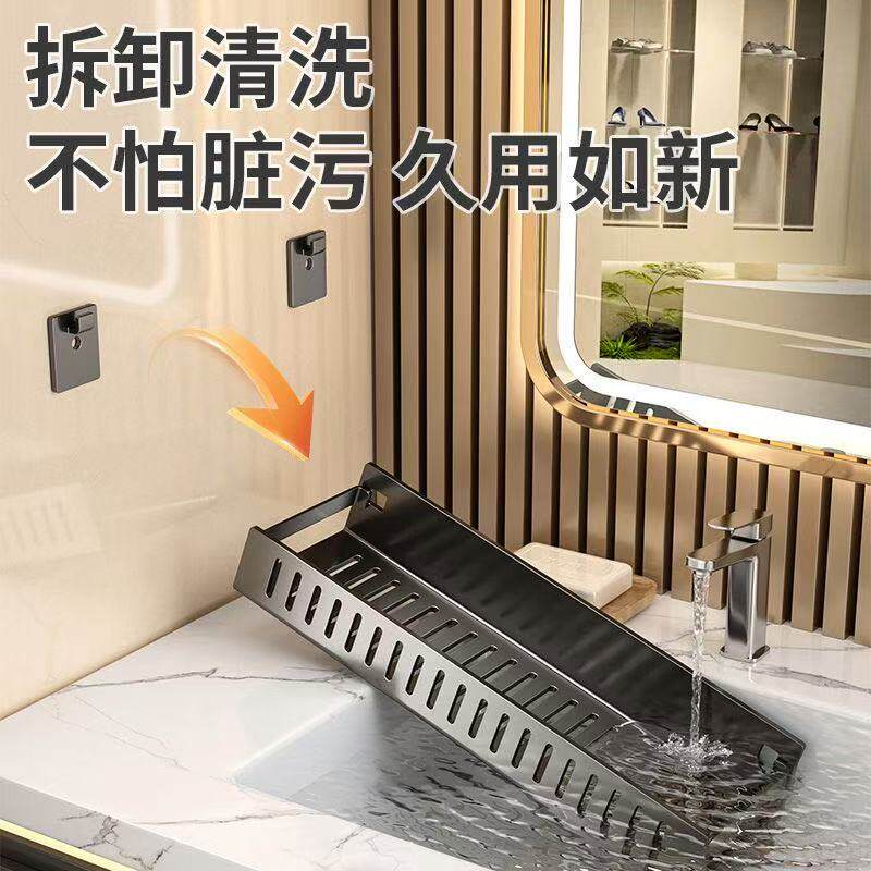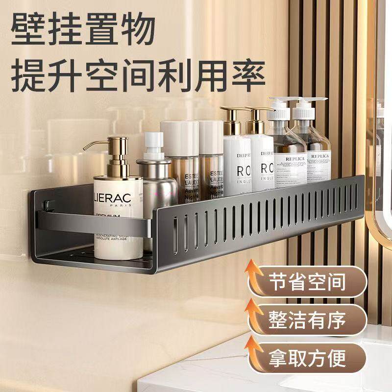 枪灰卫生间置物架浴室免打孔洗漱台厕所洗手间壁挂式毛巾收纳架子