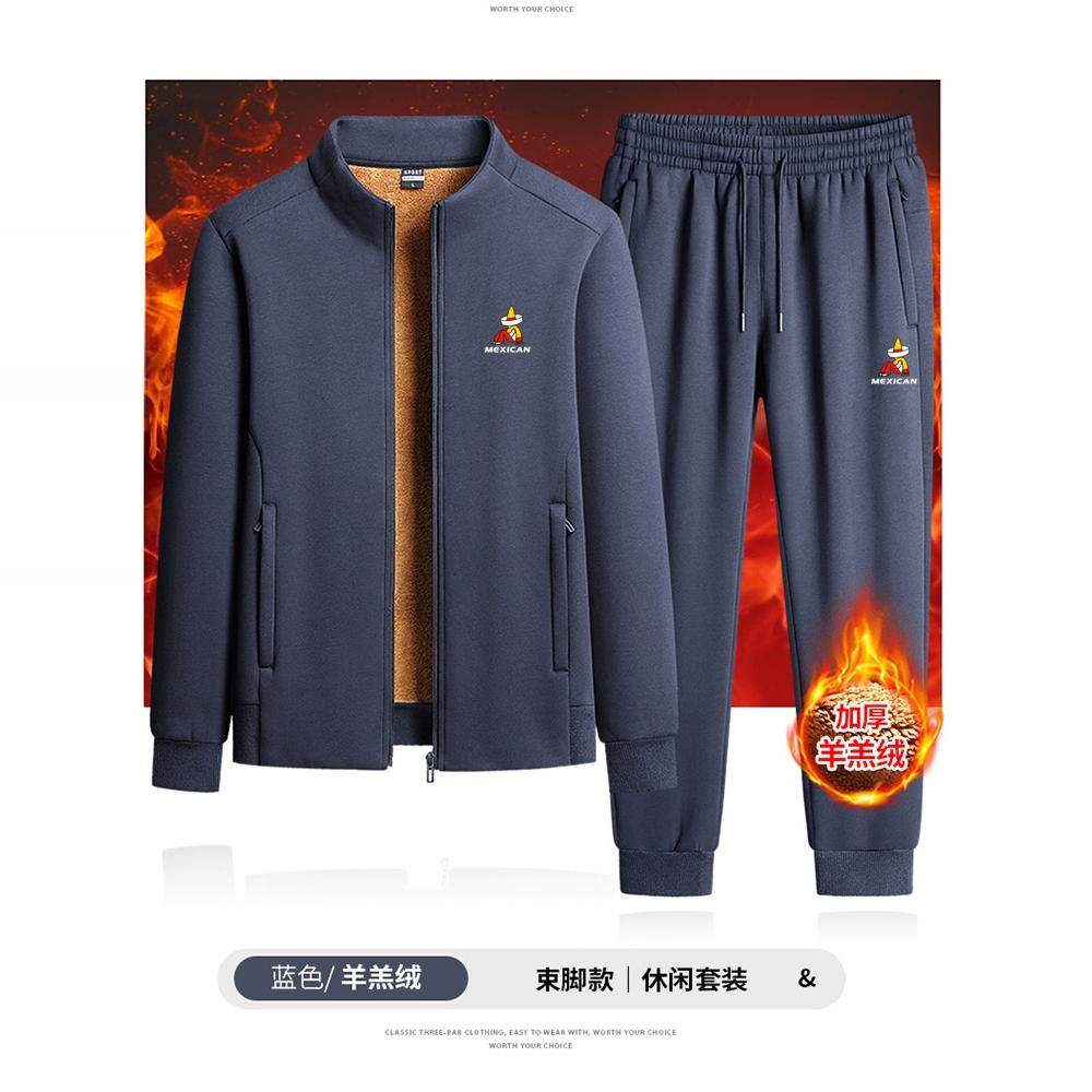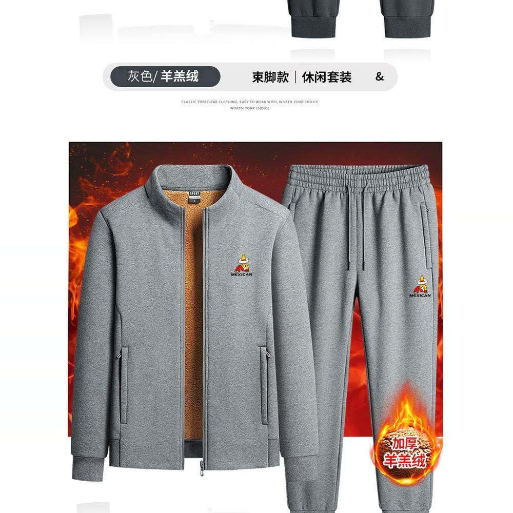 稻草人羊羔绒时尚运动套装男冬季立领纯棉爸爸中老年开衫卫衣百搭