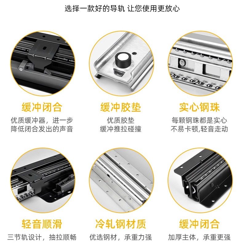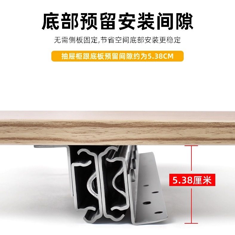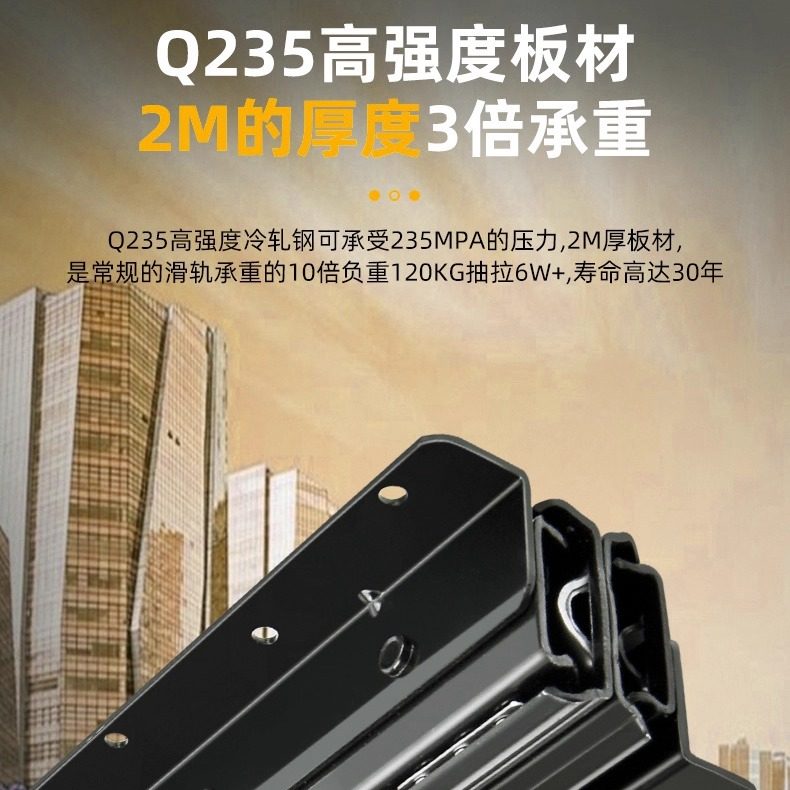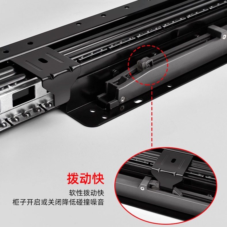 JoyLink左邻三节楼梯底柜缓冲轨道重型加长滑轨托底阻尼伸缩导轨