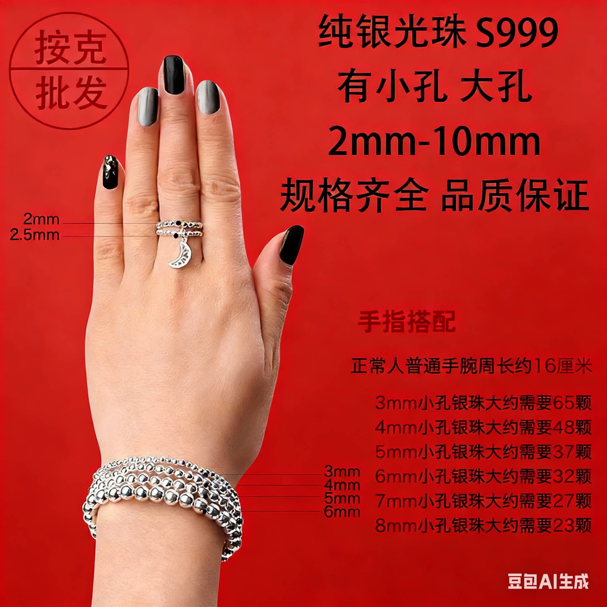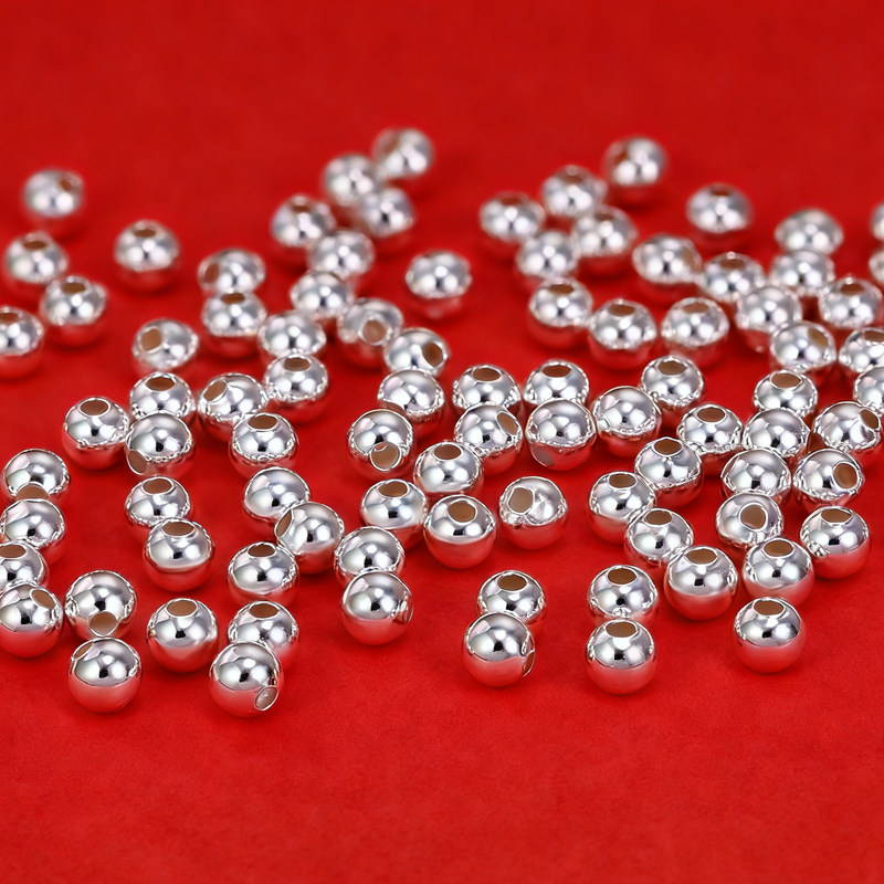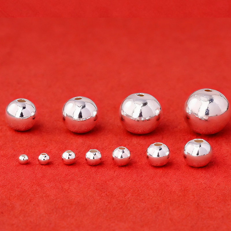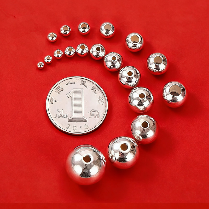 DIY定制假一赔三999足银散珠光面圆银珠按克纯银配件编绳手串材料
