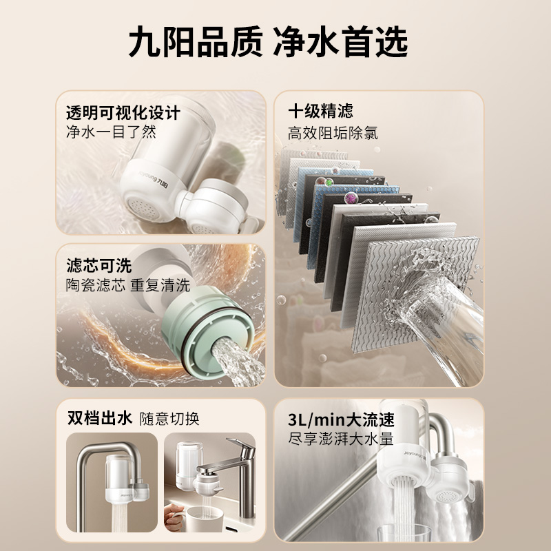 九阳净水器水龙头过滤器自来水滤水器厨房非直饮前置过滤器RT1800