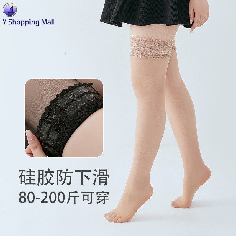 Large size flesh-colored lace long over-the-knee stockings