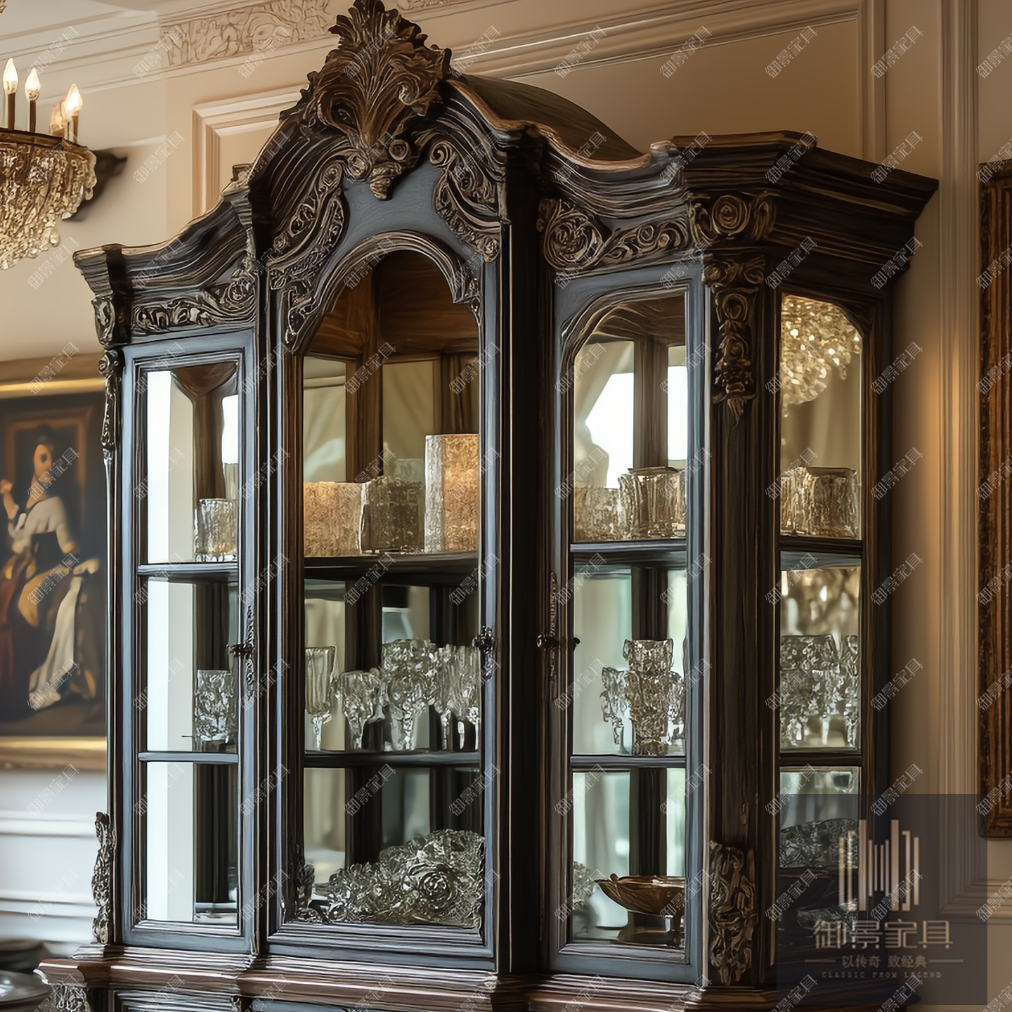 法式实木酒柜仿古蓝做旧展示柜欧式装饰柜储物柜餐边柜住宅家具