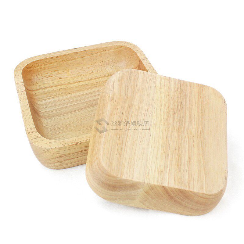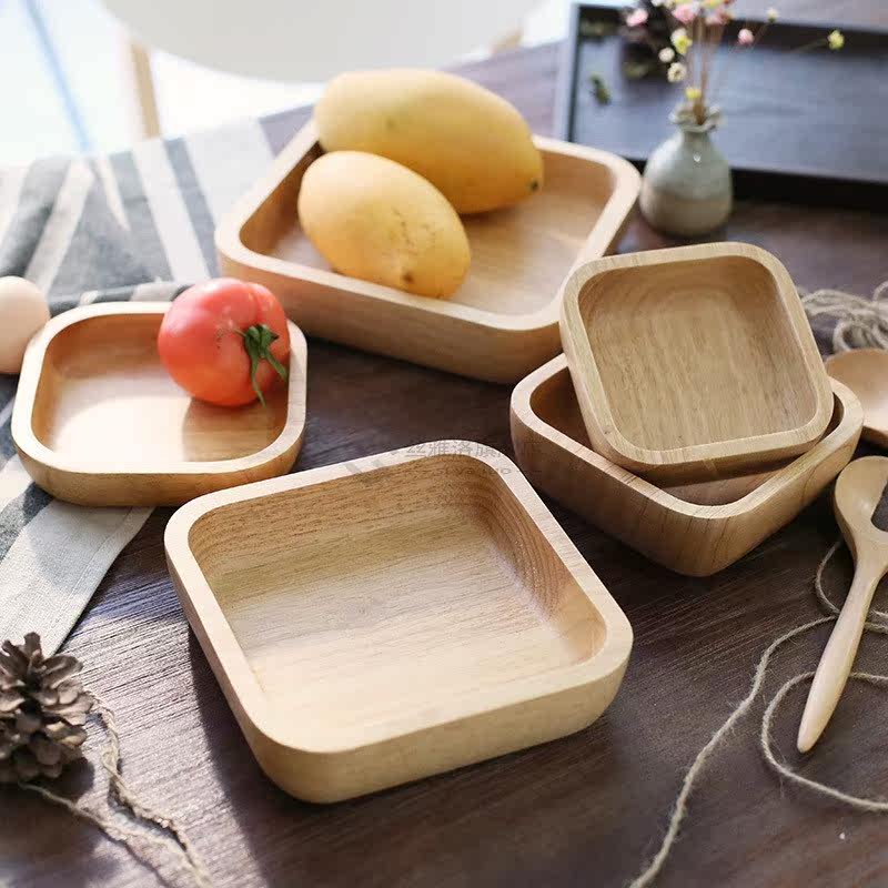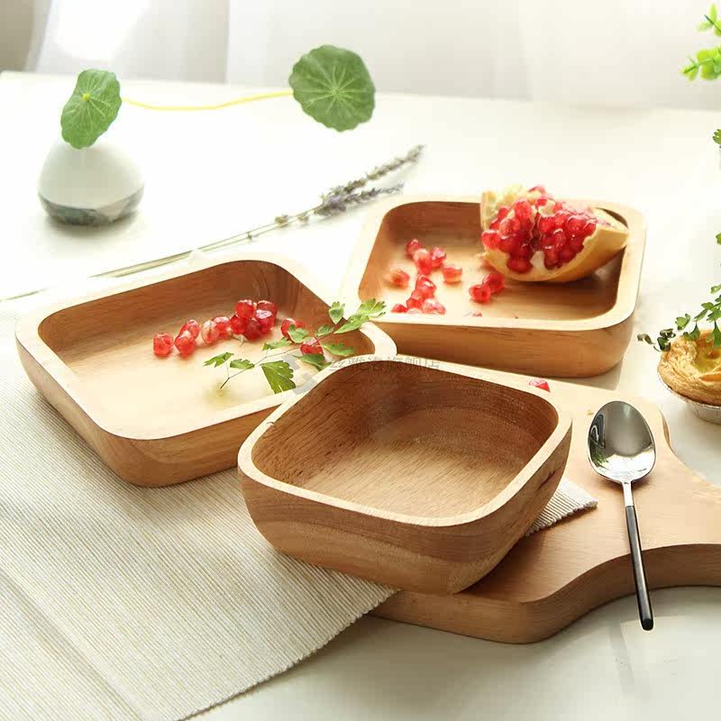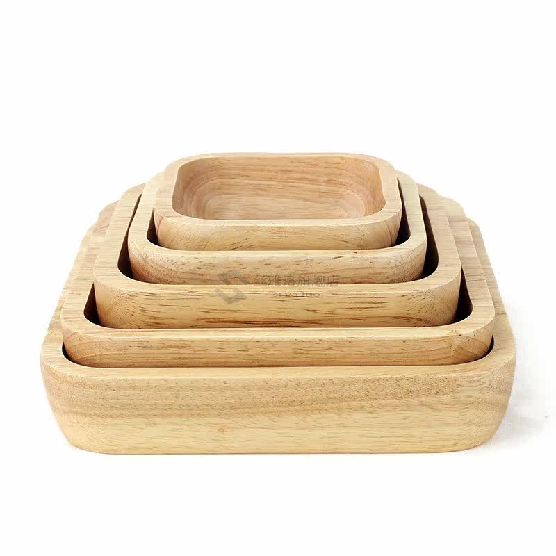 Thicken Salad Bowl Rubber Beech Wood Pan Plate Fruit Dishes