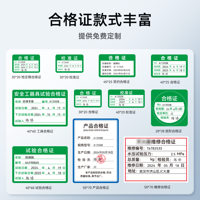 精臣M2热转印合格证标签打印机产品质量出厂可盖章安全工器具试验检定检验定制压力表安全阀机械设备计量户外