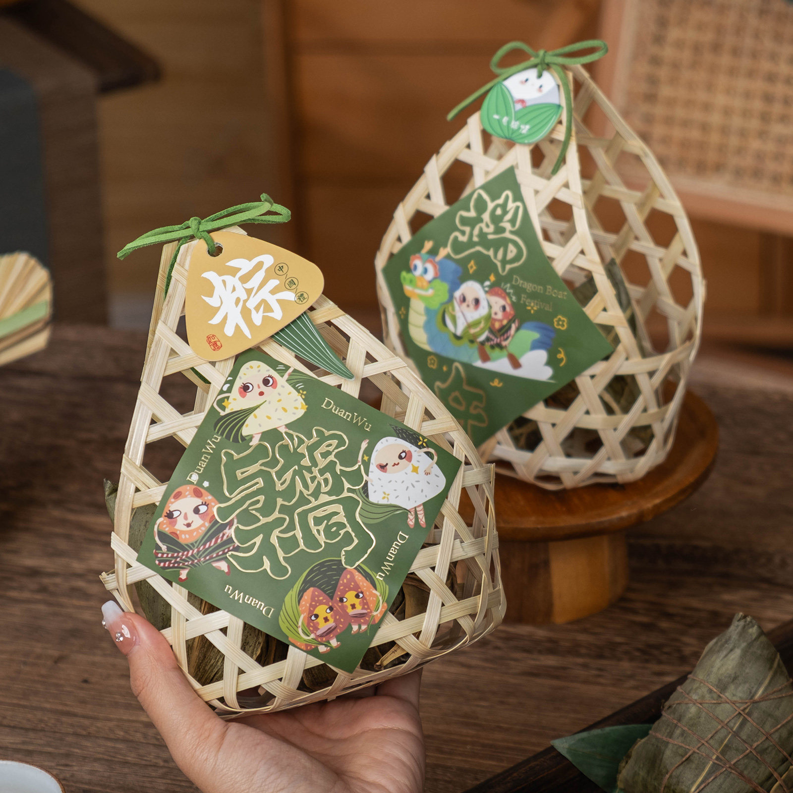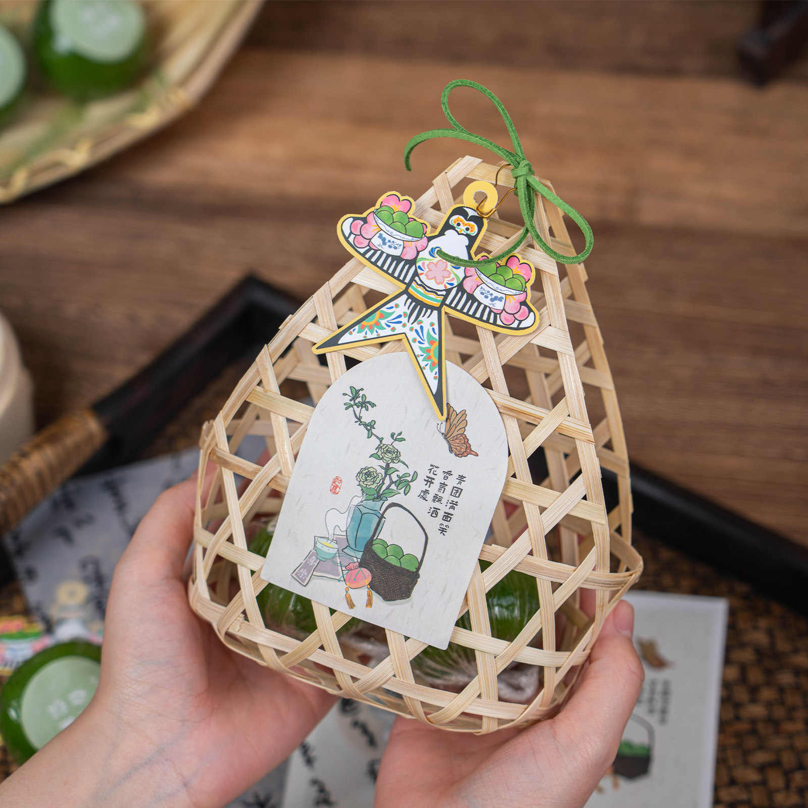 2026手工艾草青团礼盒古风小竹篮包装盒咸鸭蛋礼品盒包装端午粽子
