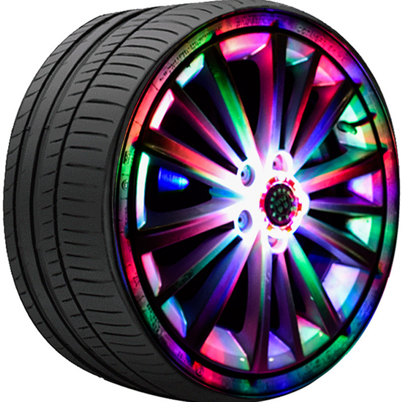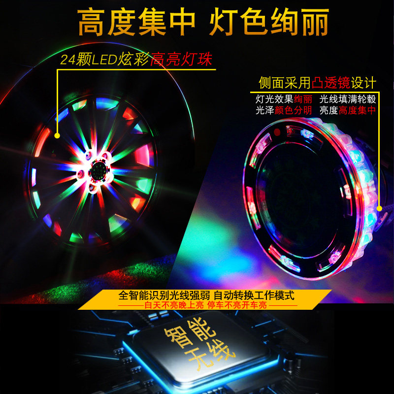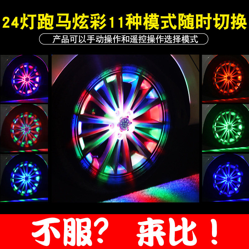 汽车轮毂灯太阳能跑马灯爆闪七彩夜光氛围灯磁悬浮改装轮胎发光灯