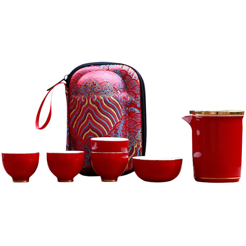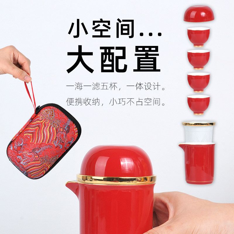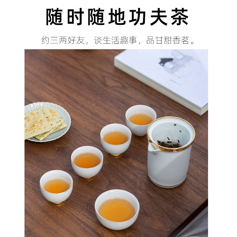 陶瓷快客杯一壶四杯家用功夫茶具套装旅行便携式泡茶壶中国风简约