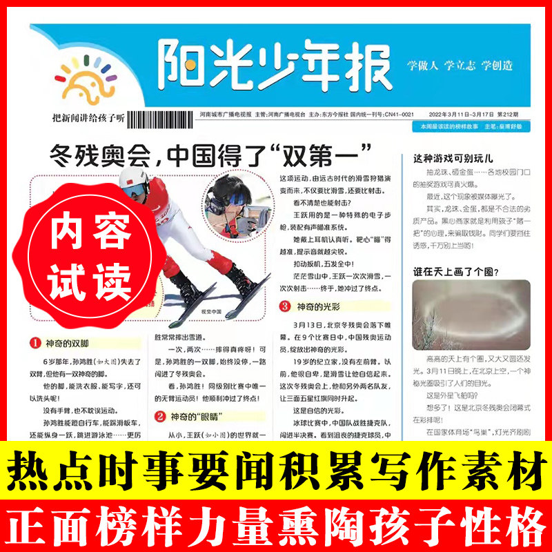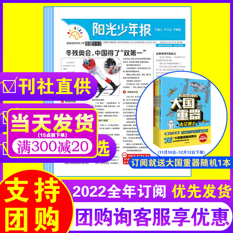 【团购价169元】阳光少年报报纸全年订阅2023/2022年11月-2023年10月/大国重器 1-6年级中小学生青少年儿童新闻类时事期刊杂志