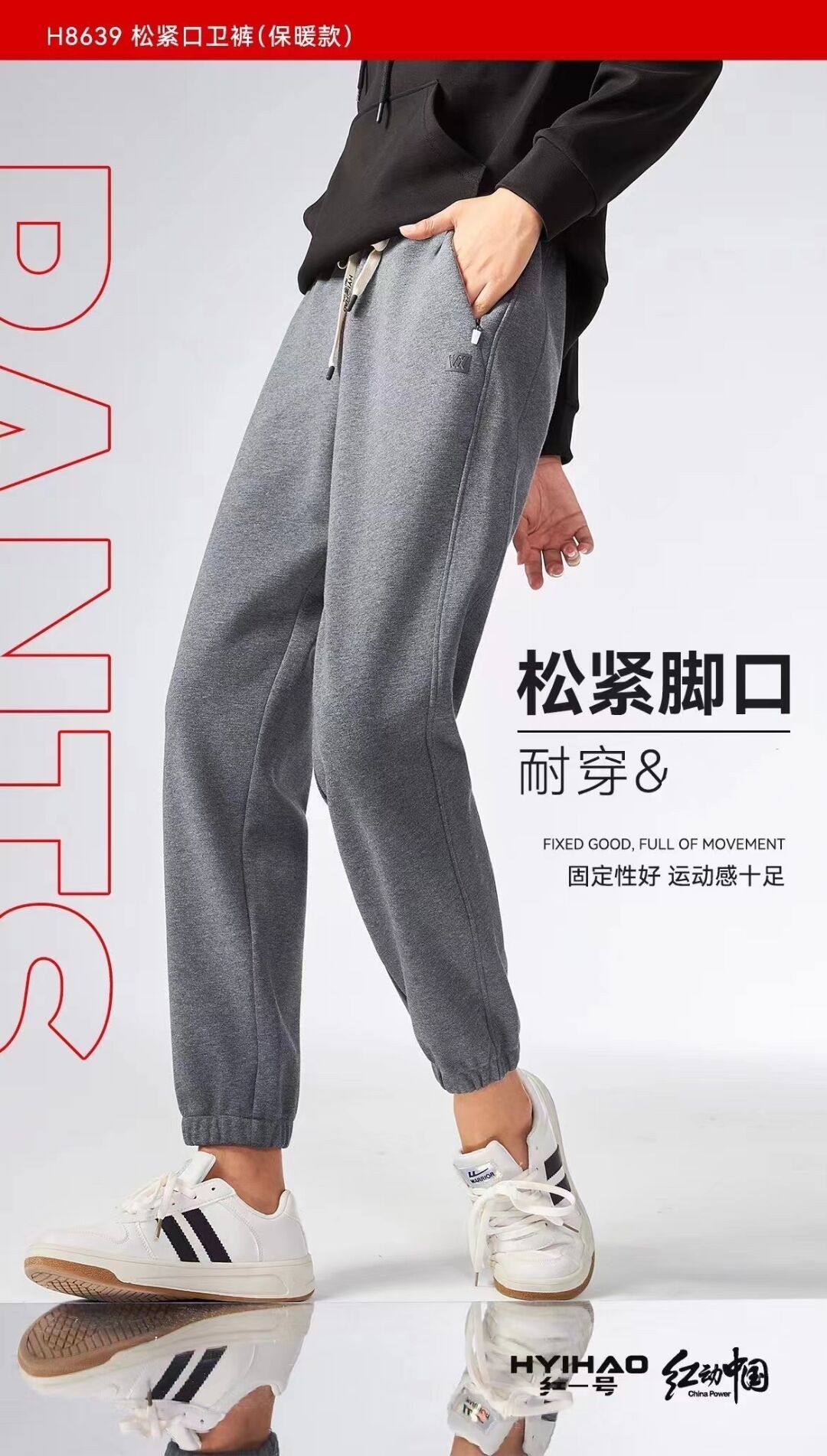 红一号2022秋冬女士保暖款时尚加绒休闲百搭宽松哈伦紧口卫裤8637