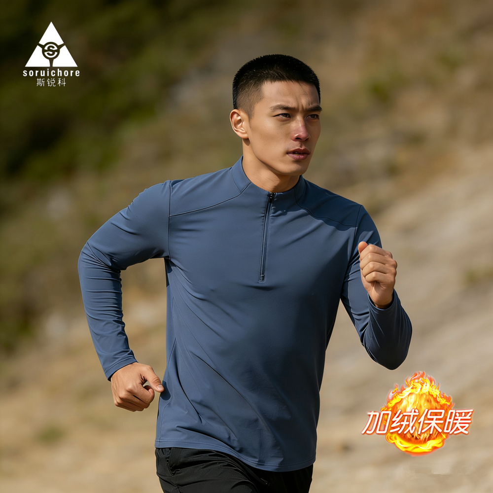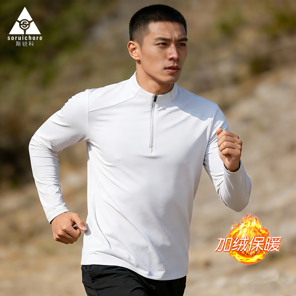 斯锐科秋冬男士加绒跑步长袖休闲半拉链健身运动上衣体育生训练服