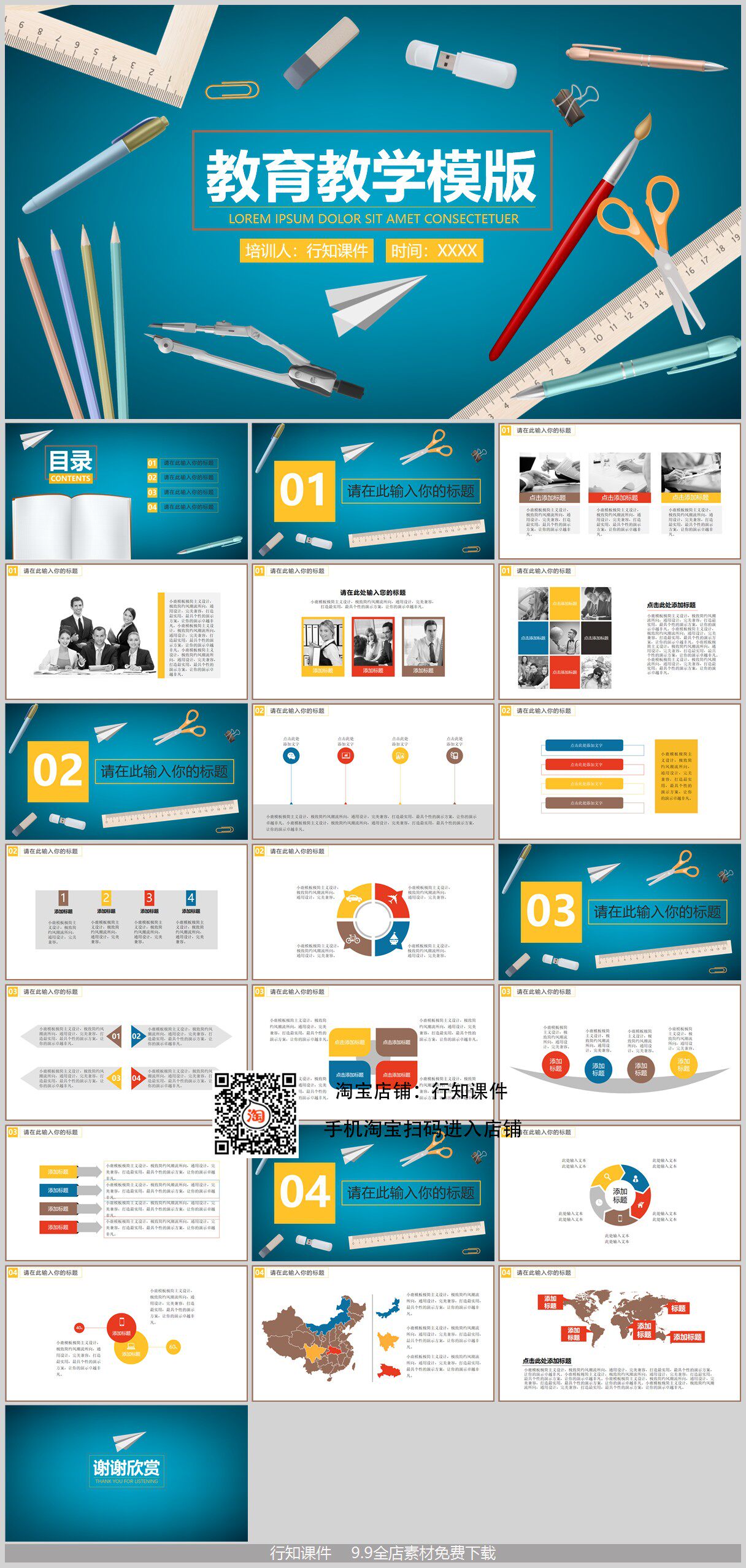 教师教育教学PPT老师说课空白模板公开课培训动态简约课件素材ppt
