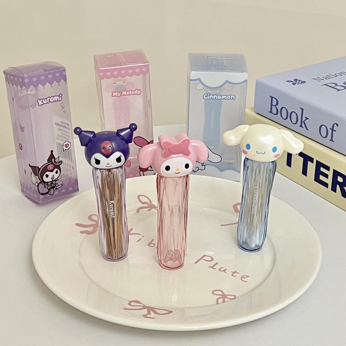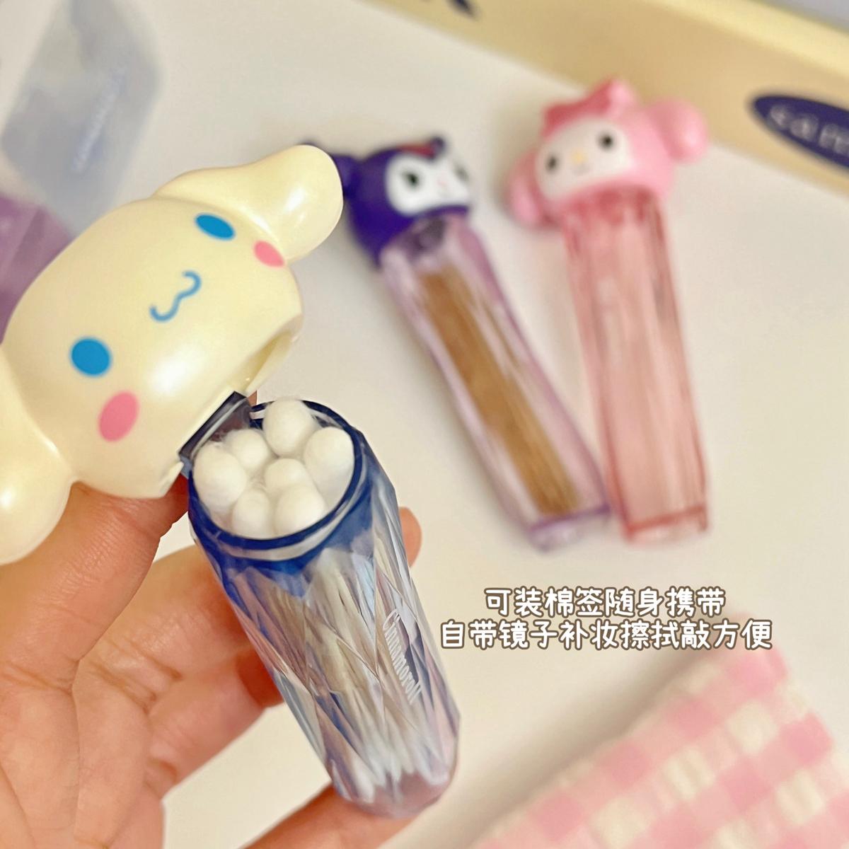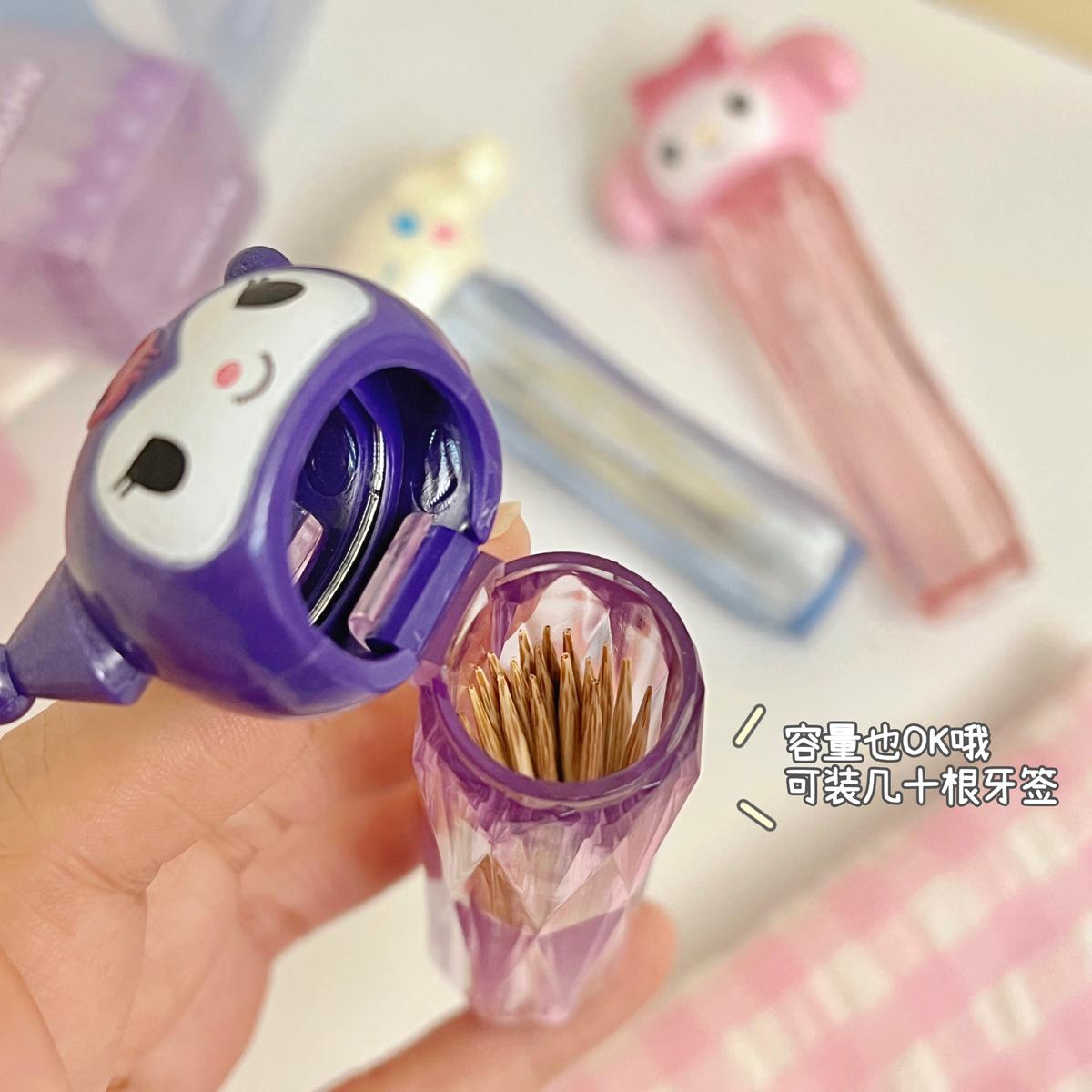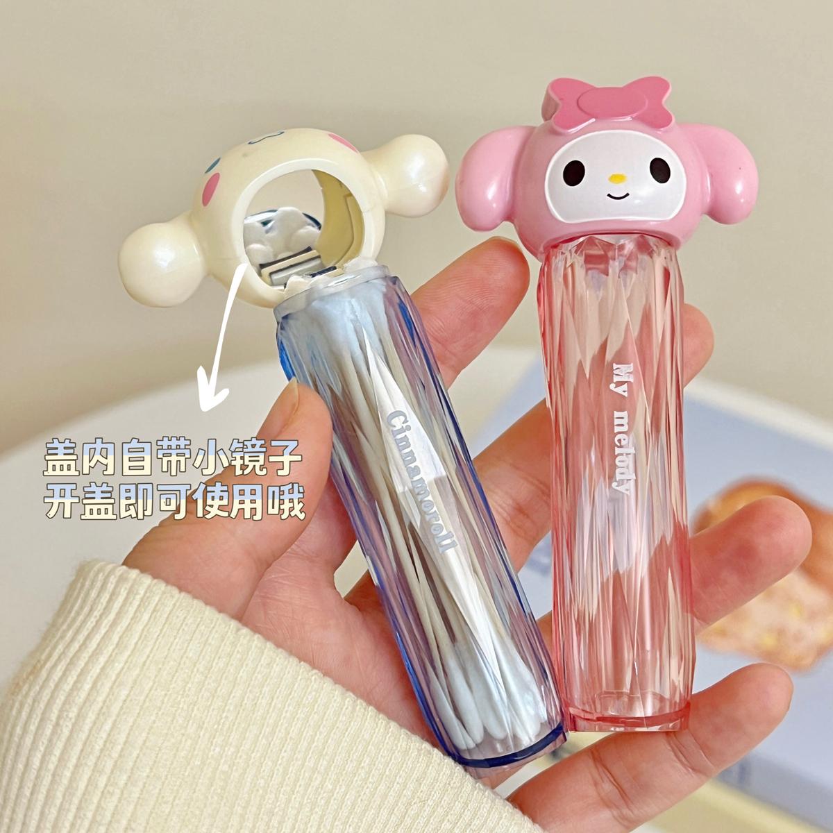 卡通可爱美乐蒂库洛米塑料棉签牙签收纳旅行便携式牙签筒整理带镜
