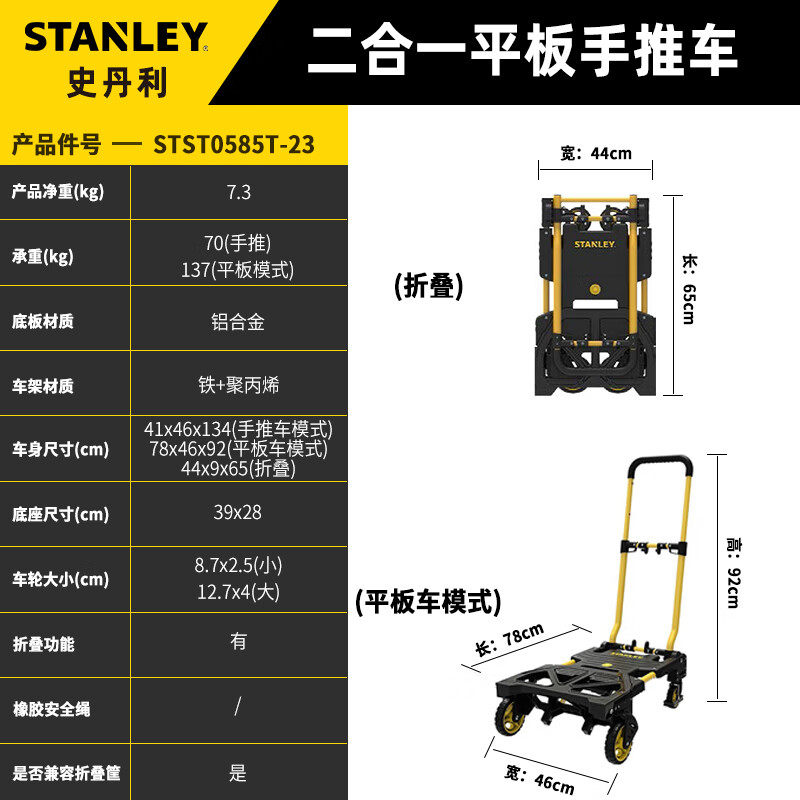 史丹利STANLEY可折叠便携工具车二合一手推车平板车STST0585T-23