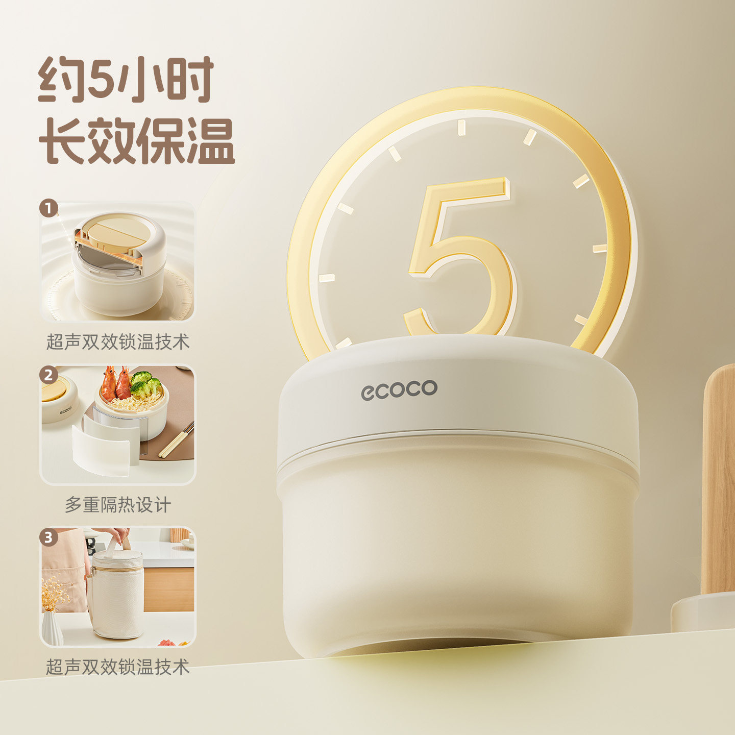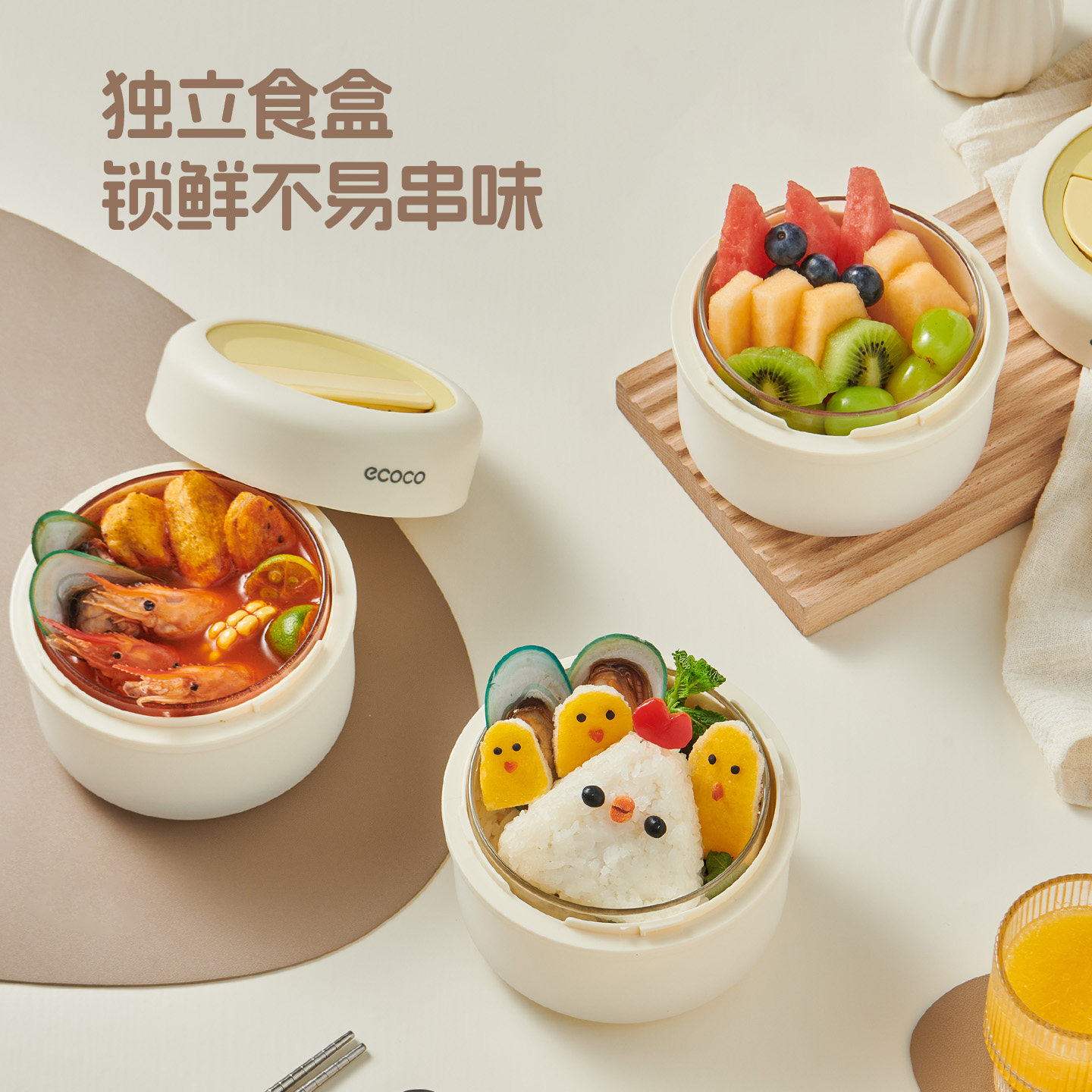 【好物体验专享】ecoco保温饭盒上班族-【3件套】饭盒*2+保温袋