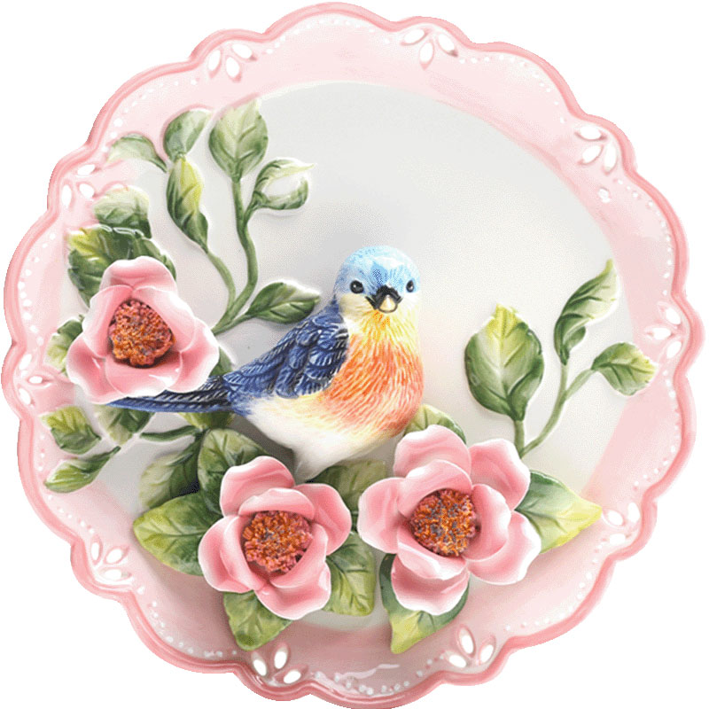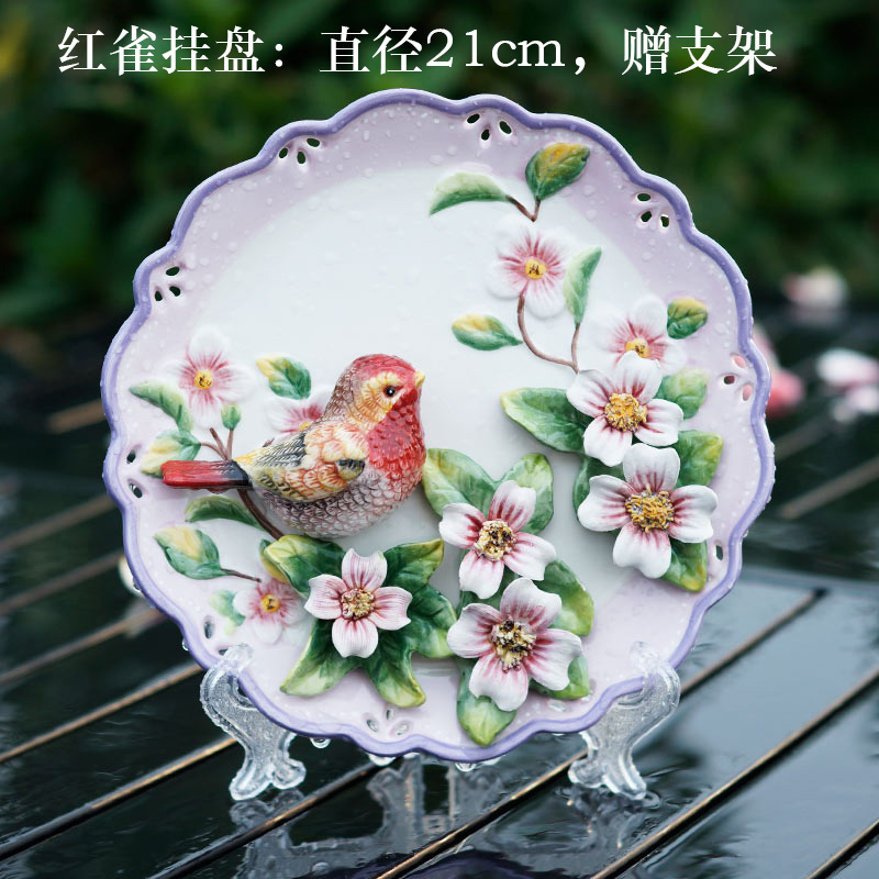 陶瓷浮雕彩绘装饰盘蓝鹊座盘x红鹊坐盘灰鹊挂盘家居装饰品墙壁装