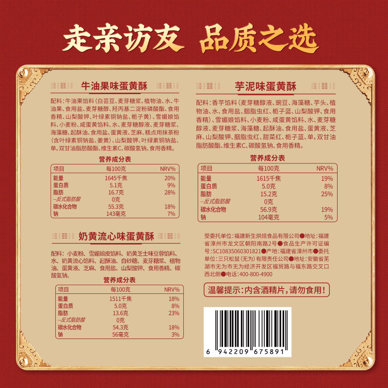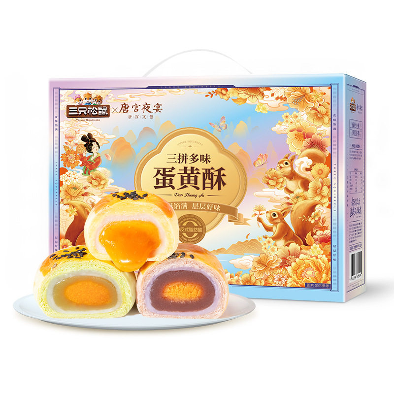 三只松鼠_蛋黄酥三拼多味礼盒特产小吃零食传统糕点过节送礼盒