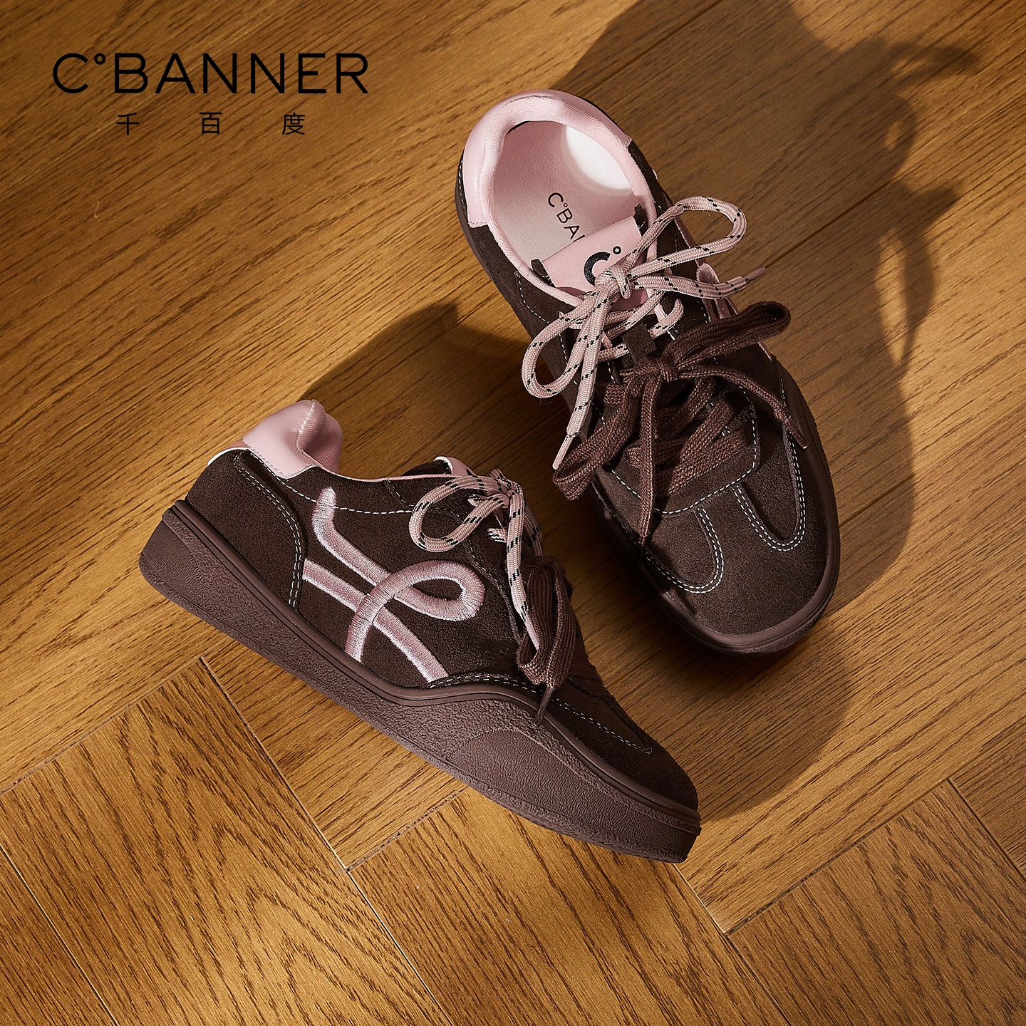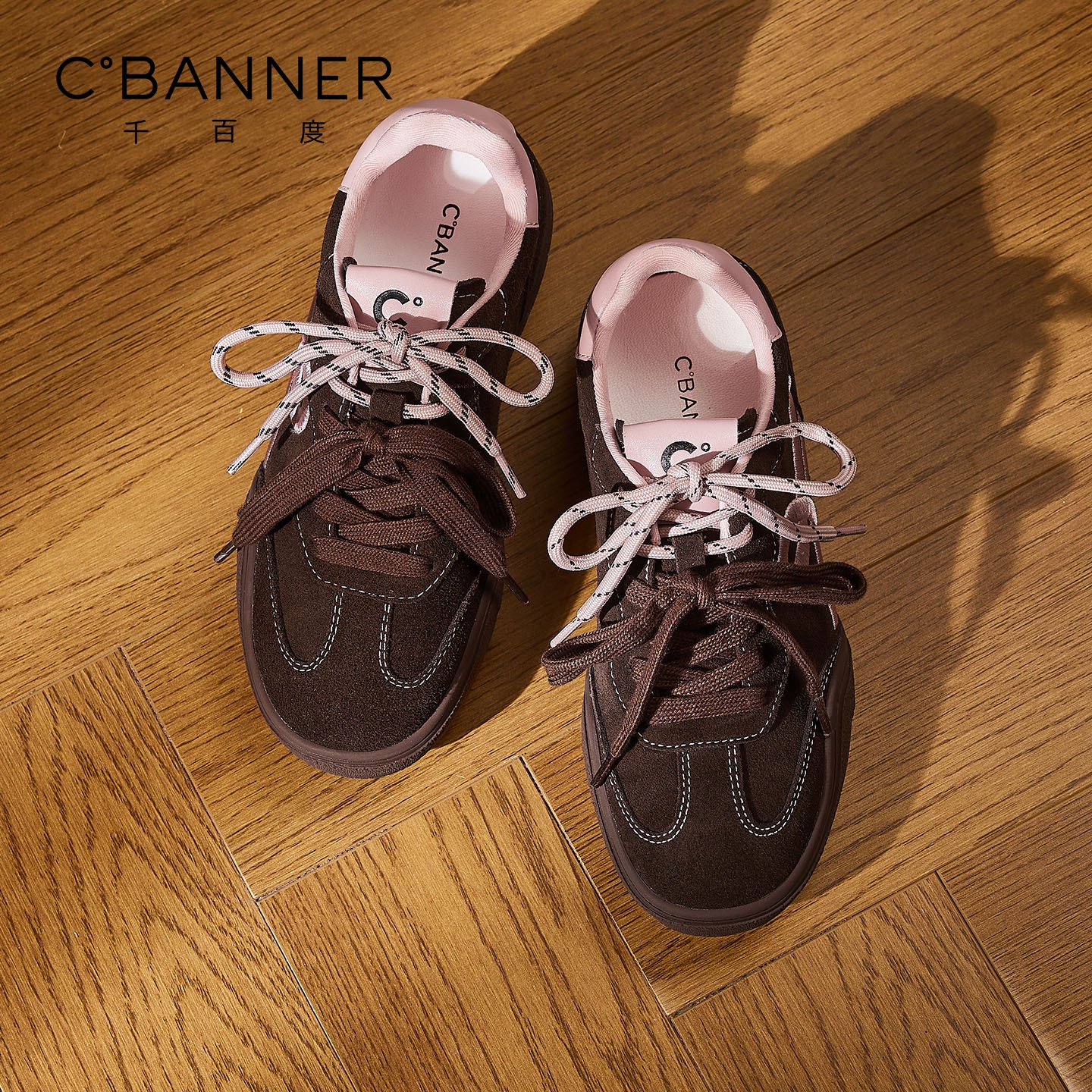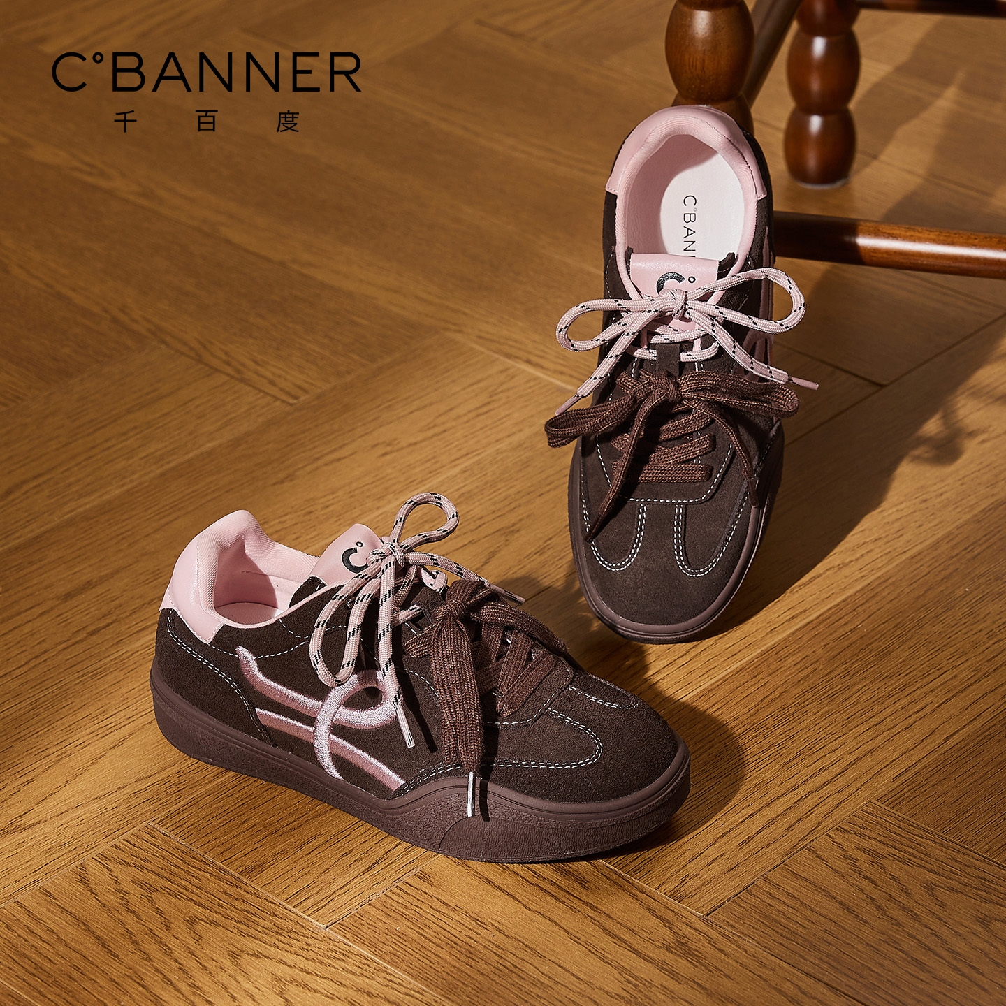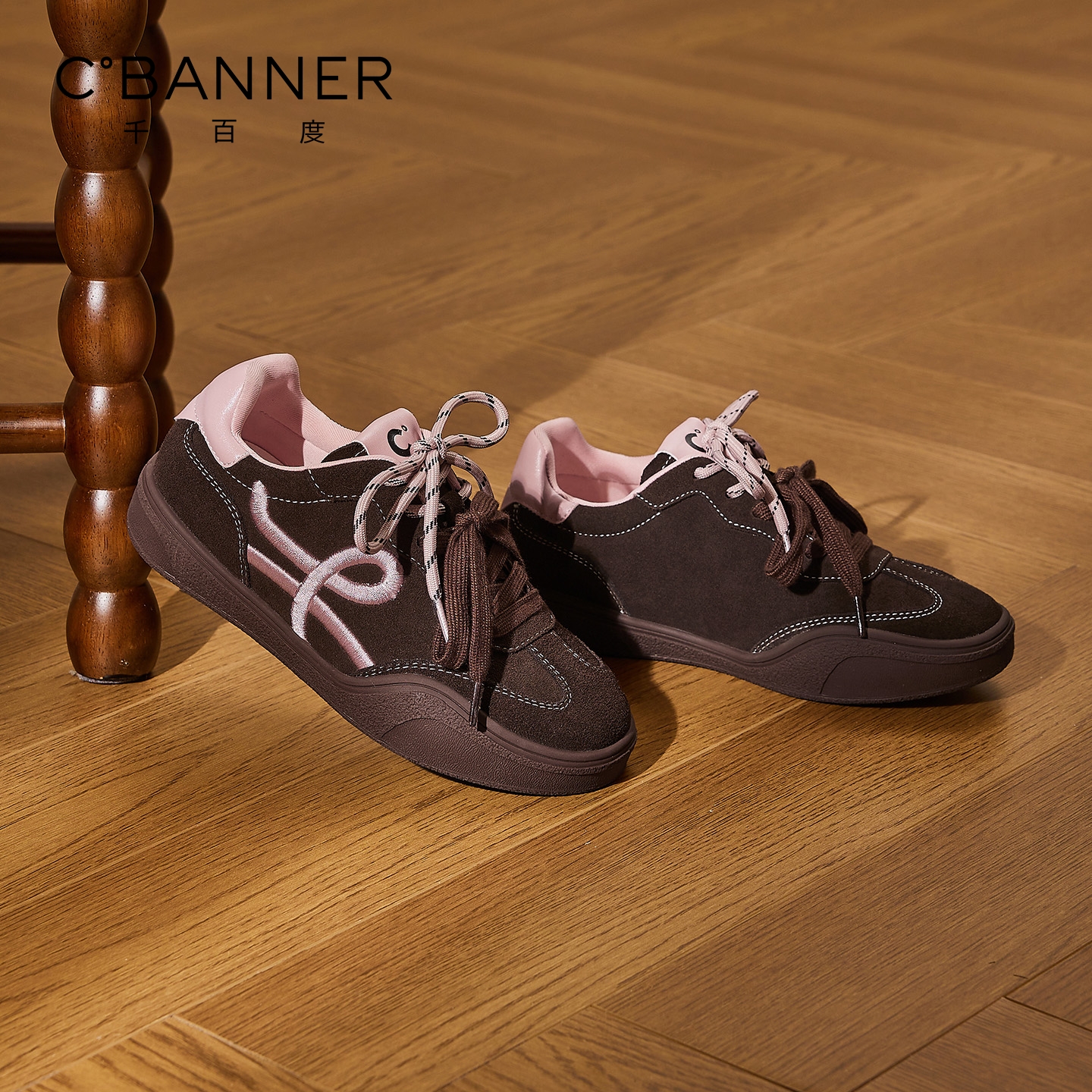 千百度女鞋2025秋季新款德训鞋休闲运动板鞋反绒皮软底透气阿甘鞋