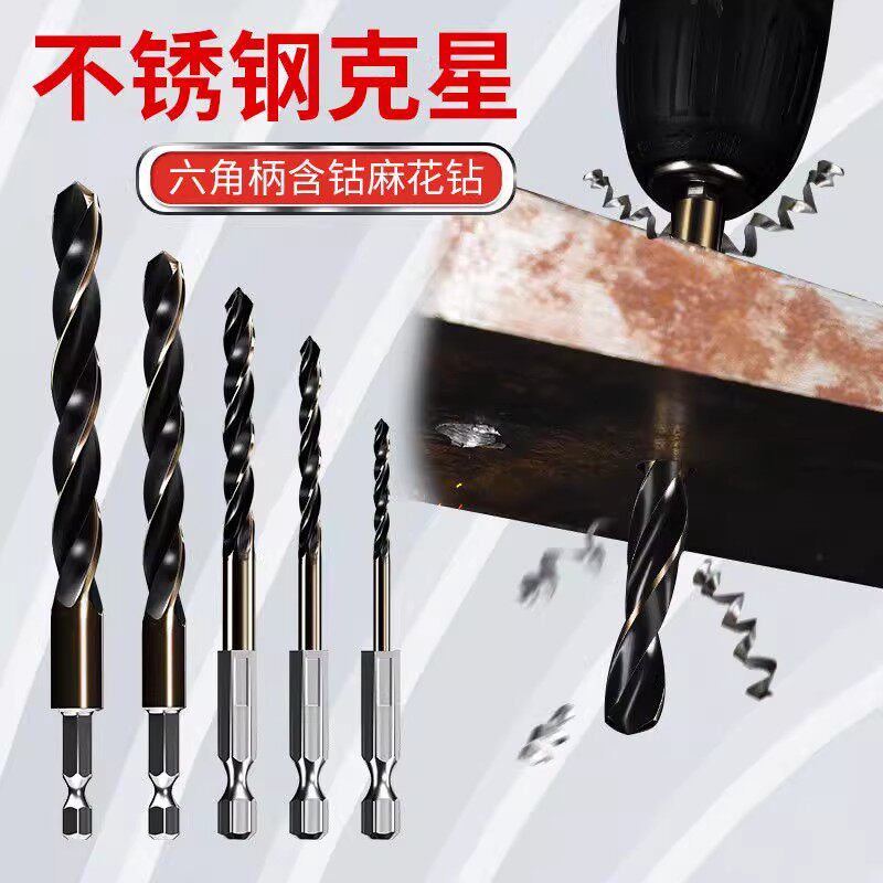 六角柄含钴麻花钻头直柄高速钢全磨制不锈钢金属专用开孔器钻头