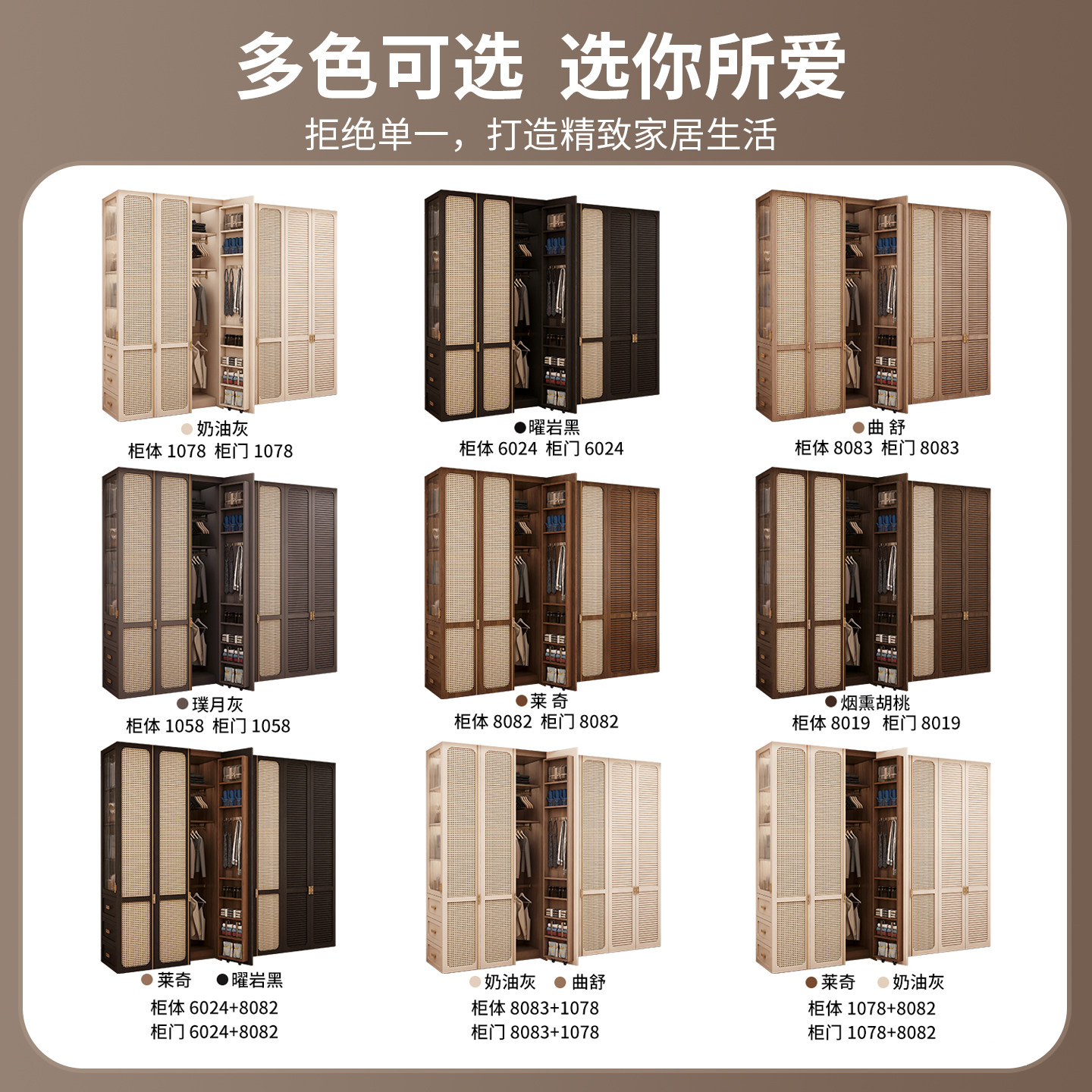 中古风衣柜家用卧室一门到顶复古转角衣帽间自由组合储物收纳柜子