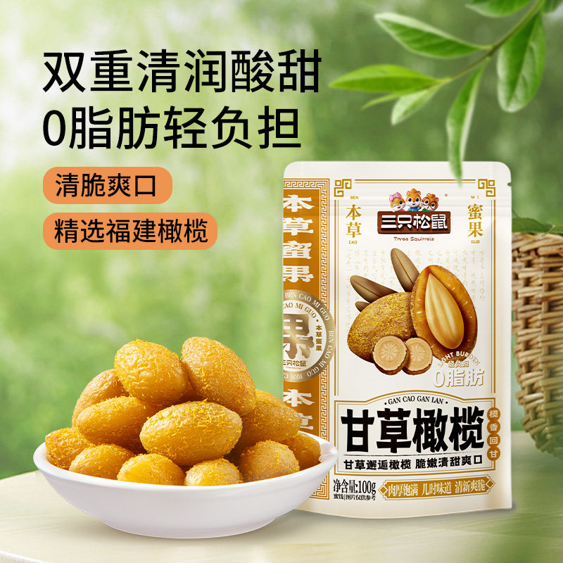 【三只松鼠_甘草系列】山楂陈皮橄榄桃肉健康果脯蜜饯特产零食