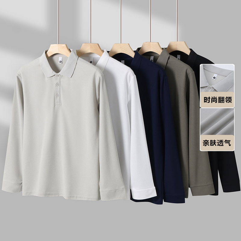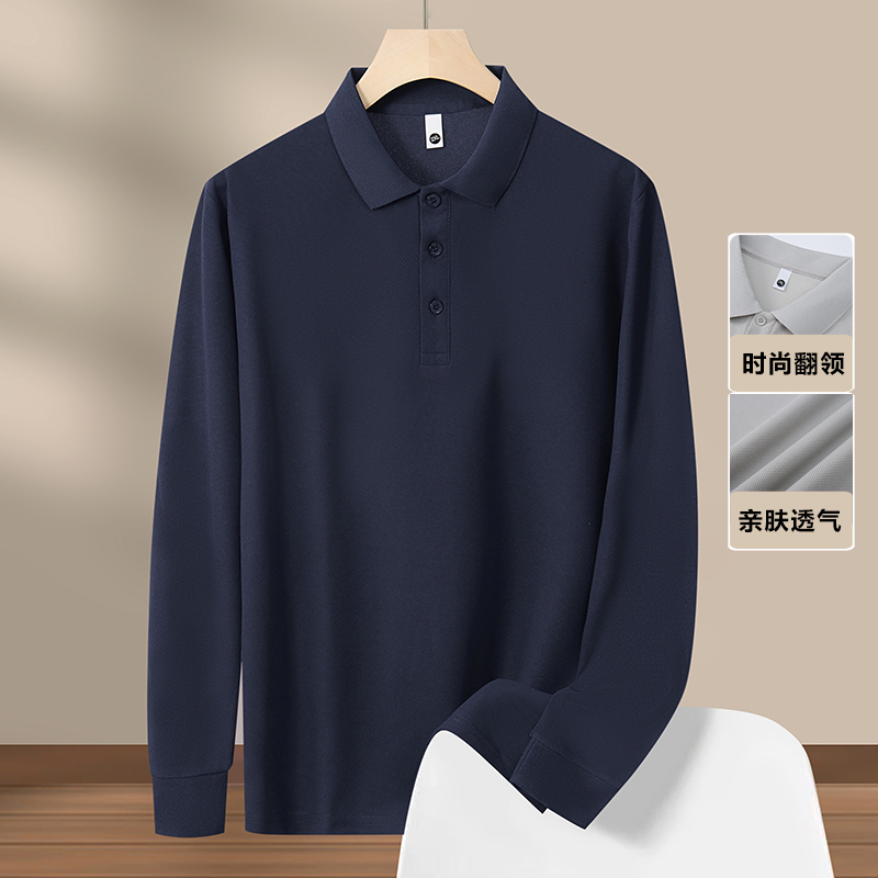 雅鹿男装长袖polo衫男士秋季休闲纯色简约翻领中年长袖t恤打底衫
