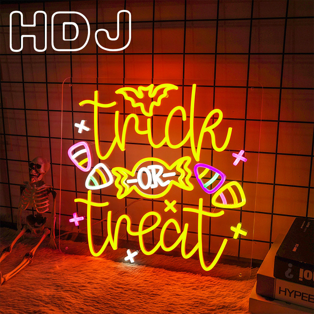 万圣节霓虹灯招牌trick or treat字母发光字糖果亡灵节日装饰灯