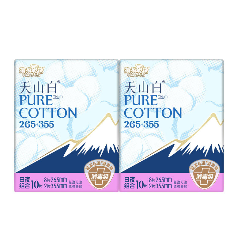淘淘氧棉棉卫生巾无香加长日用265mm+夜用355mm20片官方旗舰店