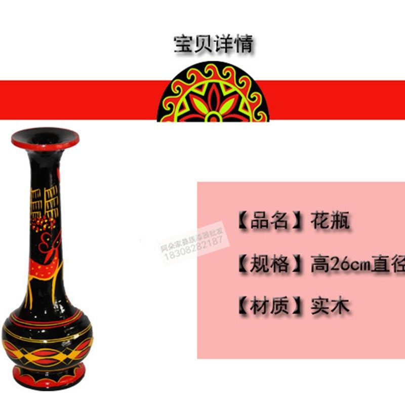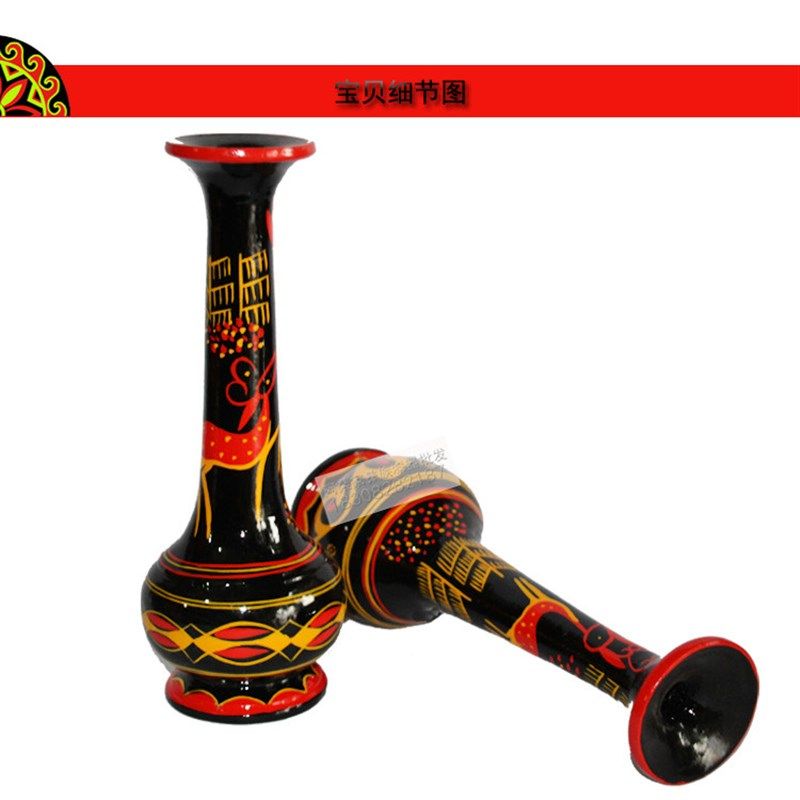 凉山彝族漆器花瓶摆件红黄黑民族特色装饰品手工艺旅游纪念品1只