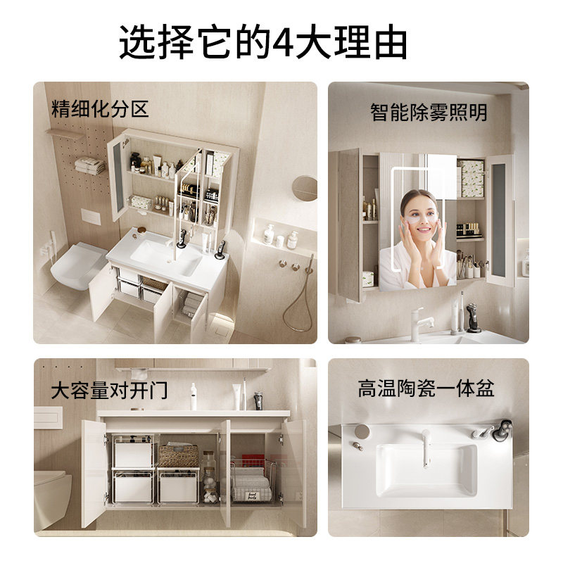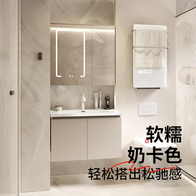 东鹏奶油风浴室柜陶瓷一体盆洗手台卫生间洗手盆组合镜柜1944